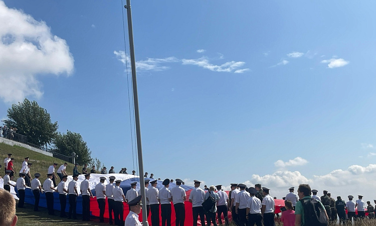 У одного из символов города Красноярска, на Караульной горе, был развернут огромный триколор. Размеры полотна составили 23,6 метров в длину и 17,5 метров в ширину, а вес – 60 кг.