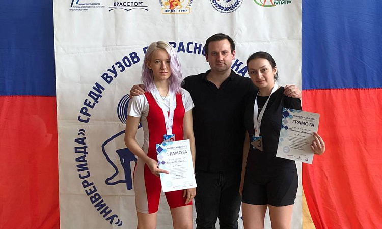 Студента КрИЖТ ИрГУПС группы СЖД 2-22-1 Анастасия Повлюченко в весовой категории 52 кг заняла III место с результатом 30 кг, студента группы СОД 1-22-1 Елена Кирданова в весовой категории 57 кг заняла II место с результатом 42.5 кг!!!