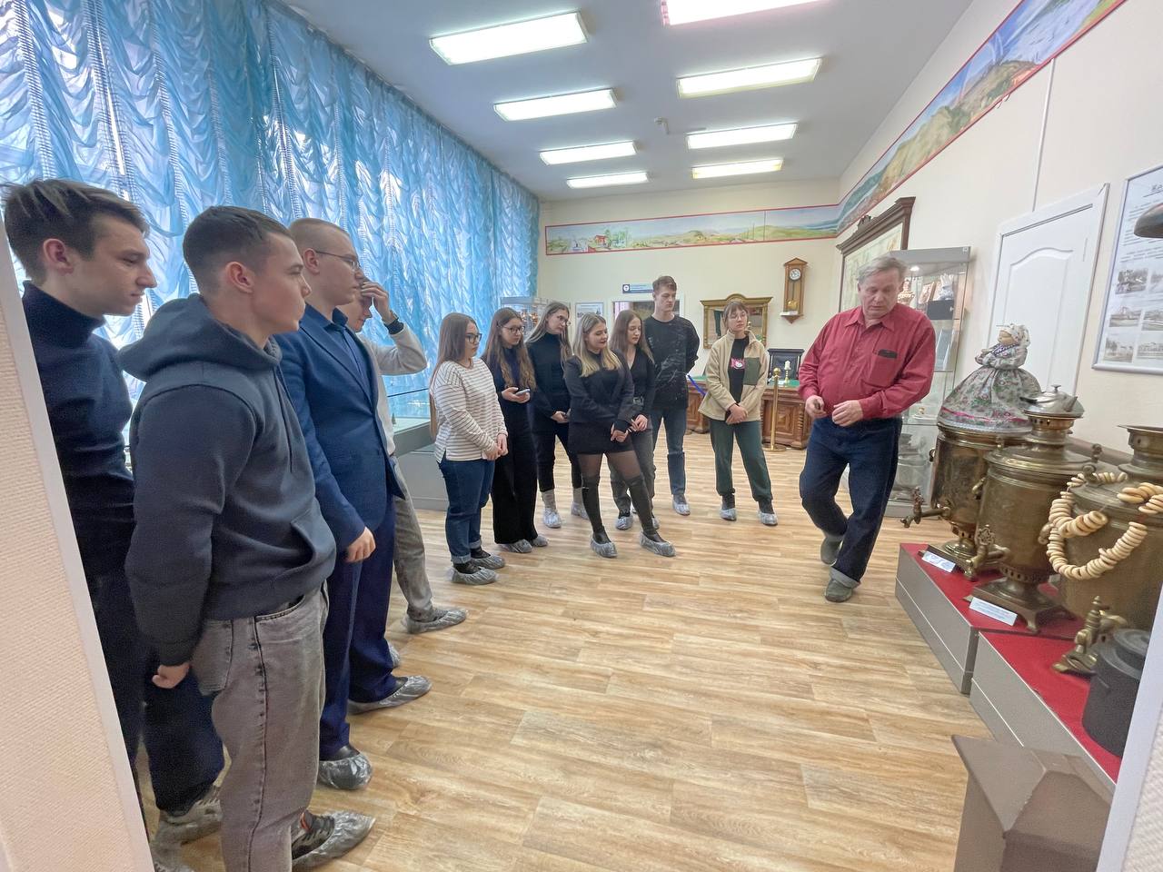 Вячеслав Витальевич Белов показал экспозиции музея и познакомил ребят с историей строительства и развитием магистрали, руководителями дороги разных лет, историей служб дороги, боевыми и трудовыми традициями красноярских железнодорожников.