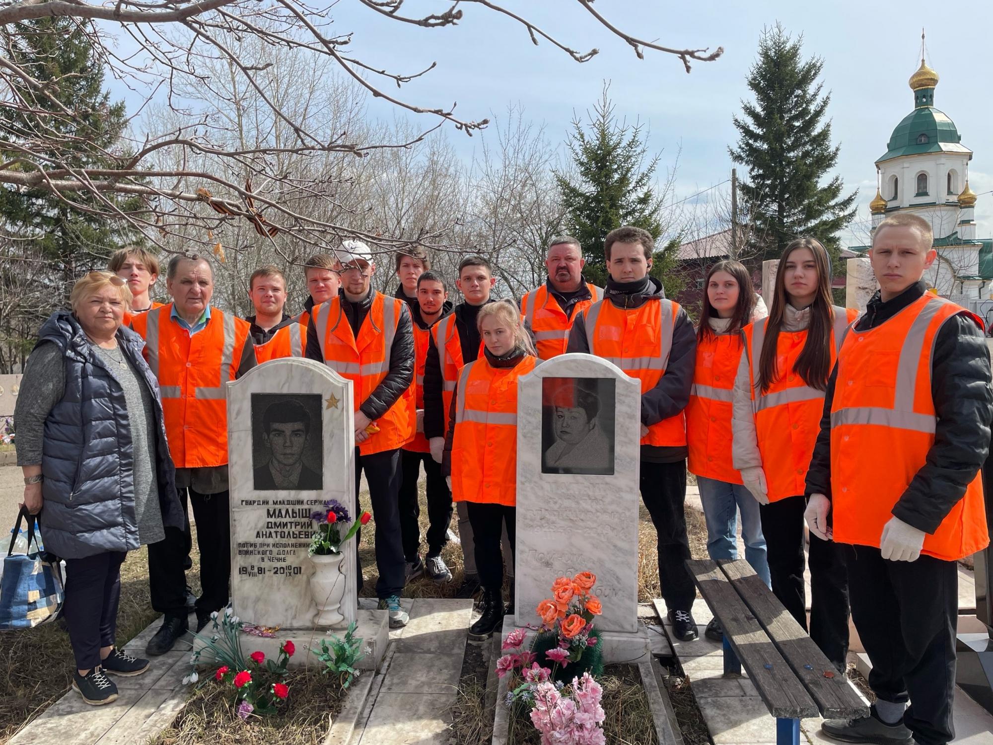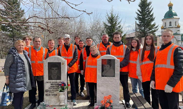 4 мая студенты КрИЖТ ИрГУПС группы ЭПСл 11-22-4 и ЭПСв 11-22-3 под руководством преподавателей Владимира Иванова и Сергея Домнина привели на кладбище “Бадалык” в эстетический вид места захоронения выпускников, погибших в Афганистане и Чеченской Республике, а также могилы воинов интернационалистов из Афганистана.