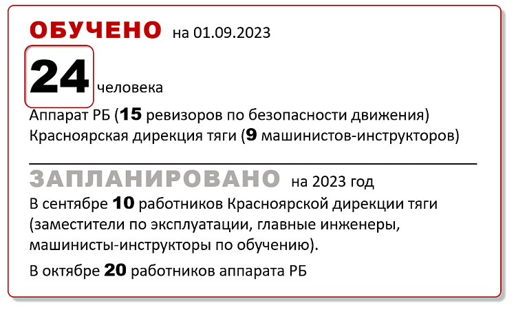 Факультет «Заочное обучение и дополнительное образование» при поддержке АО «НИИАС» разработал программу повышения квалификации «Технология интервального регулирования движения поездов «ВИРТУАЛЬНАЯ СЦЕПКА». Это новая и актуальная программа направлена на повышение нормативной провозной способности железных дорог, и хотя технологический процесс был утвержден в августе 2023 года, мы уже обучили 24 человека (15 ревизоров по безопасности движения и 9 машинистов инструкторов), а до конца года планируем обучить еще 30 работников ОАО «РЖД».