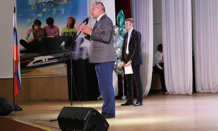 В КрИЖТ продолжается празднование дня знаний. Следующая линейка прошла для студентов института. Первым студентов поздравил директор института Евгений Савченко. Так же мероприятие почтили присутствием начальник Красноярской железной дороги Алексей Туманин, начальник отдела транспортной безопасности Сибирского территориального управления Федерального агентства железнодорожного транспорта Николай Борисов, заместитель руководителя Октябрьского района города Красноярска Сергей Сухарев, начальник Красноярской дирекции инфраструктуры Игорь Кузнецов и исполняющий обязанности председателя ДОРПРОФЖЕЛ на Красноярской железной дороге Игорь Белозерский.