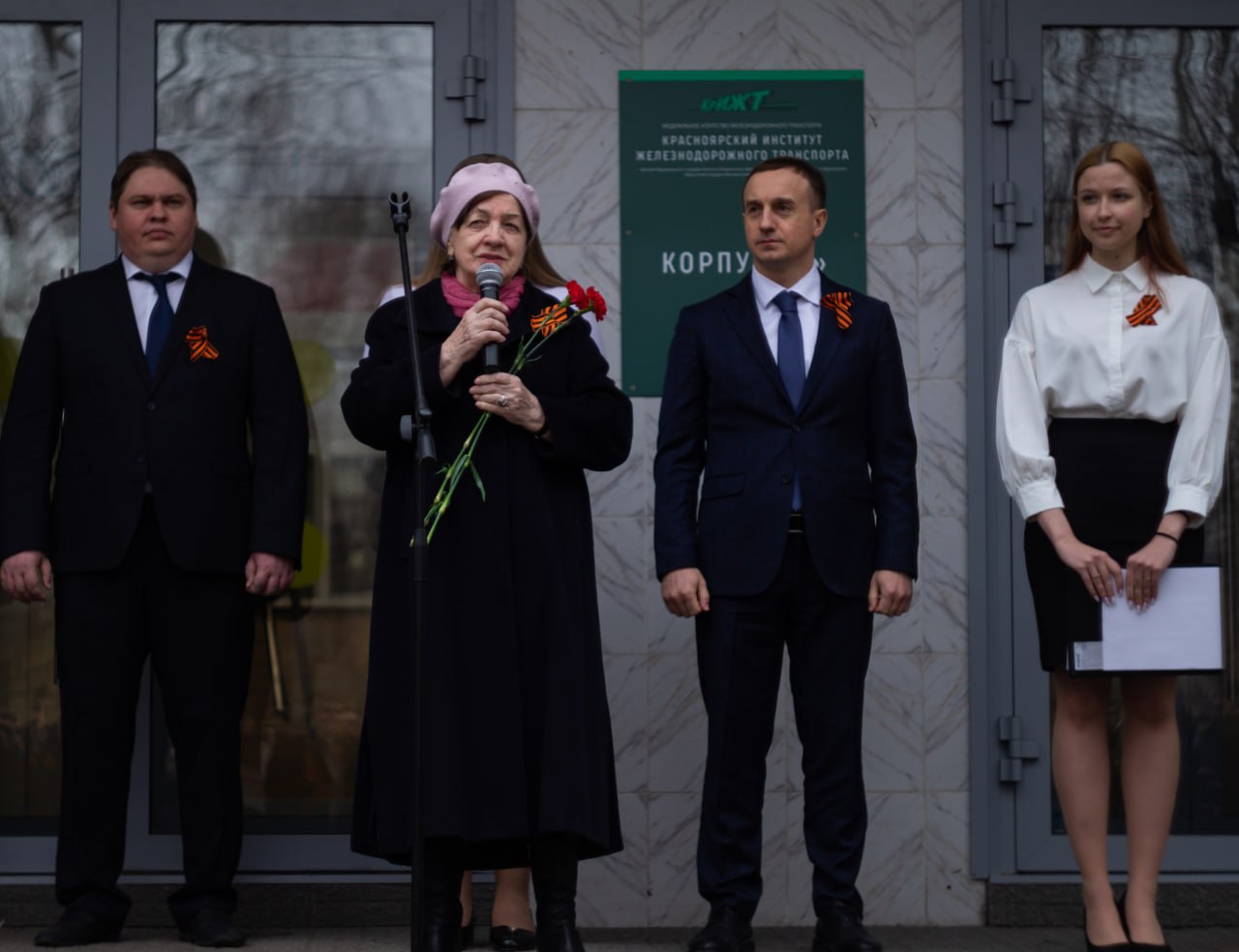 Также на митинге прозвучали слова поздравления от заместителя начальника отдела администрации Октябрьского района в городе Красноярск Елены Дорониной, председателя Совета ветеранов КрИЖТ Людмилы Гостяевой, и, конечно же, директора нашего института Евгения Савченко.