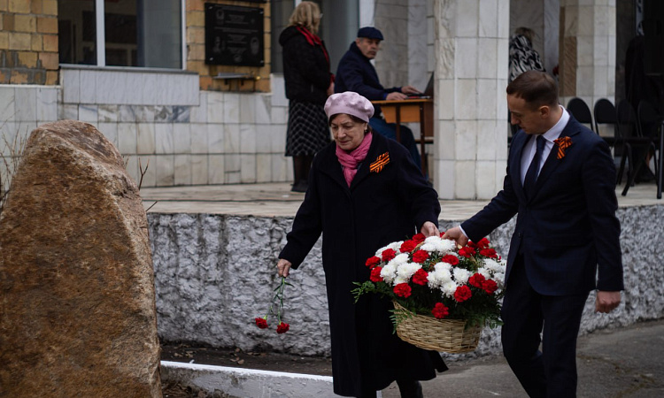 На митинге состоялось возложение цветов к Памятному камню в честь курсантов Школы военных техников, участников ВОВ. Эта миссия была предоставлена почетной группе, состоявшей из ветеранов института: «Ветеранов Труда», «Детей войны», а также представителей администрации института, возглавляемой директором КрИЖТ Евгением Савченко.