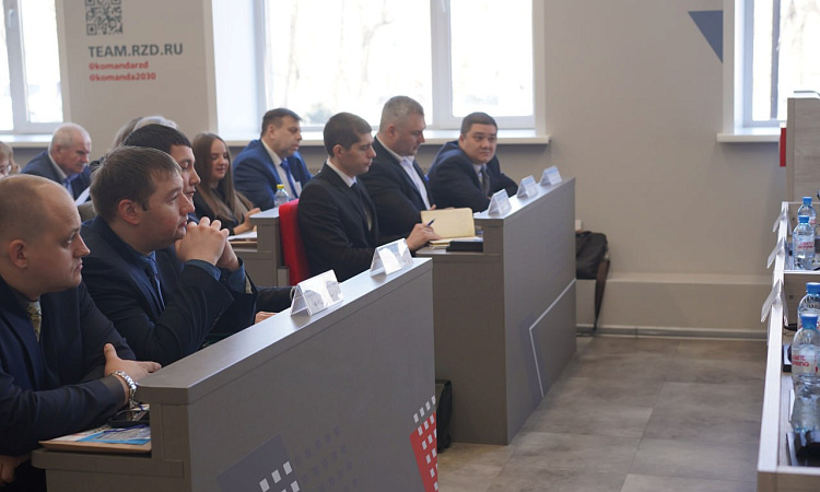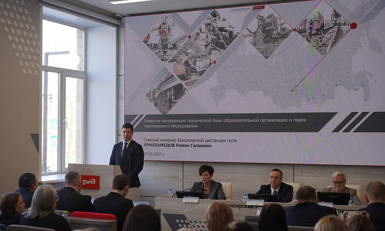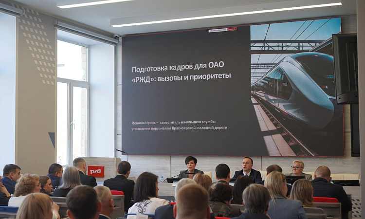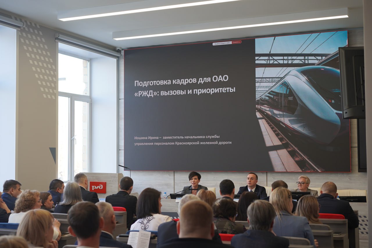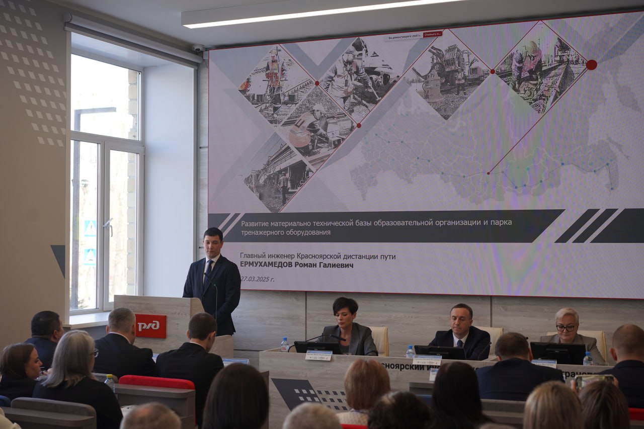 Ведущие инженеры и руководители Красноярской железной дороги (Р.Г. Ермухамедов, Д.В. Побегайло, В.А. Усков) – представили доклады о ключевых вызовах и перспективах подготовки кадров.