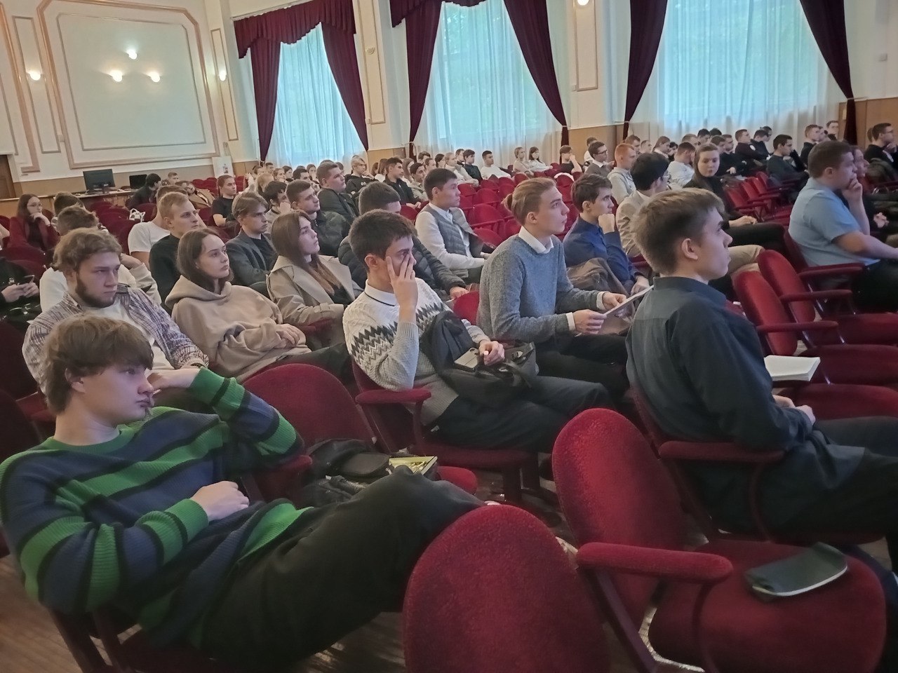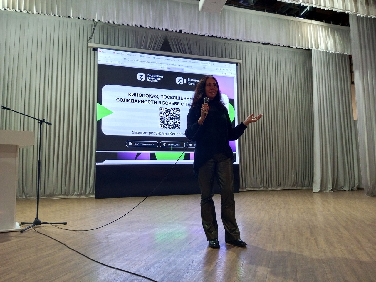 Сегодня в актовом зале КрИЖТ ИрГУПС состоялась премьера показа документального фильма в рамках проекта «Знание. Кино» Российского общества «Знание» ко Дню солидарности борьбы с терроризмом, посвященный сентябрьской трагедии 2004 года в Беслане. На протяжении всего мероприятия в зале царила абсолютная тишина. В завершении просмотра фильма гости почтили память жертв теракта минутой молчания.