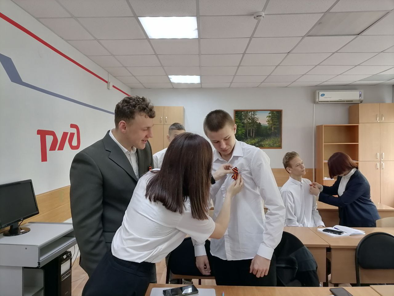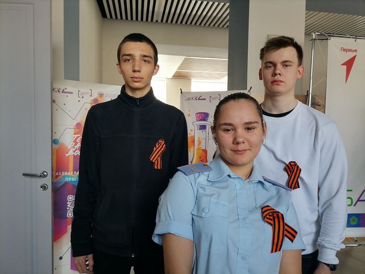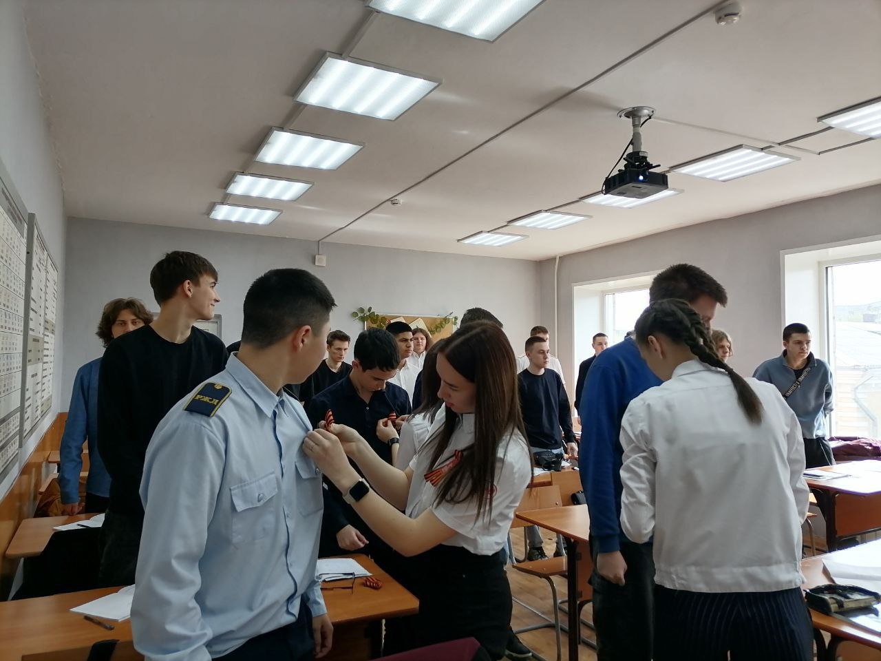 Обучающиеся активно участвовали в раздаче ленточек, рассказывая об истории символа и важности сохранения памяти о героях Великой Отечественной войны. Многие делились личными историями своих семей, связанными с войной, подчеркивая значимость этого символа для каждой семьи.