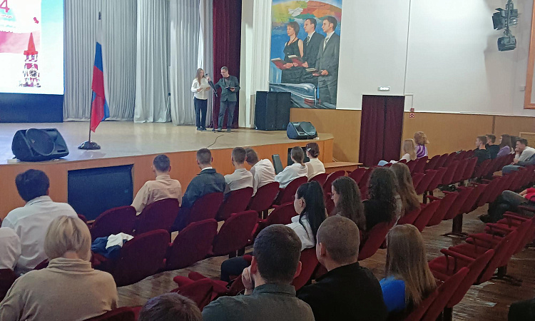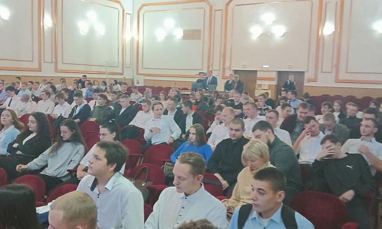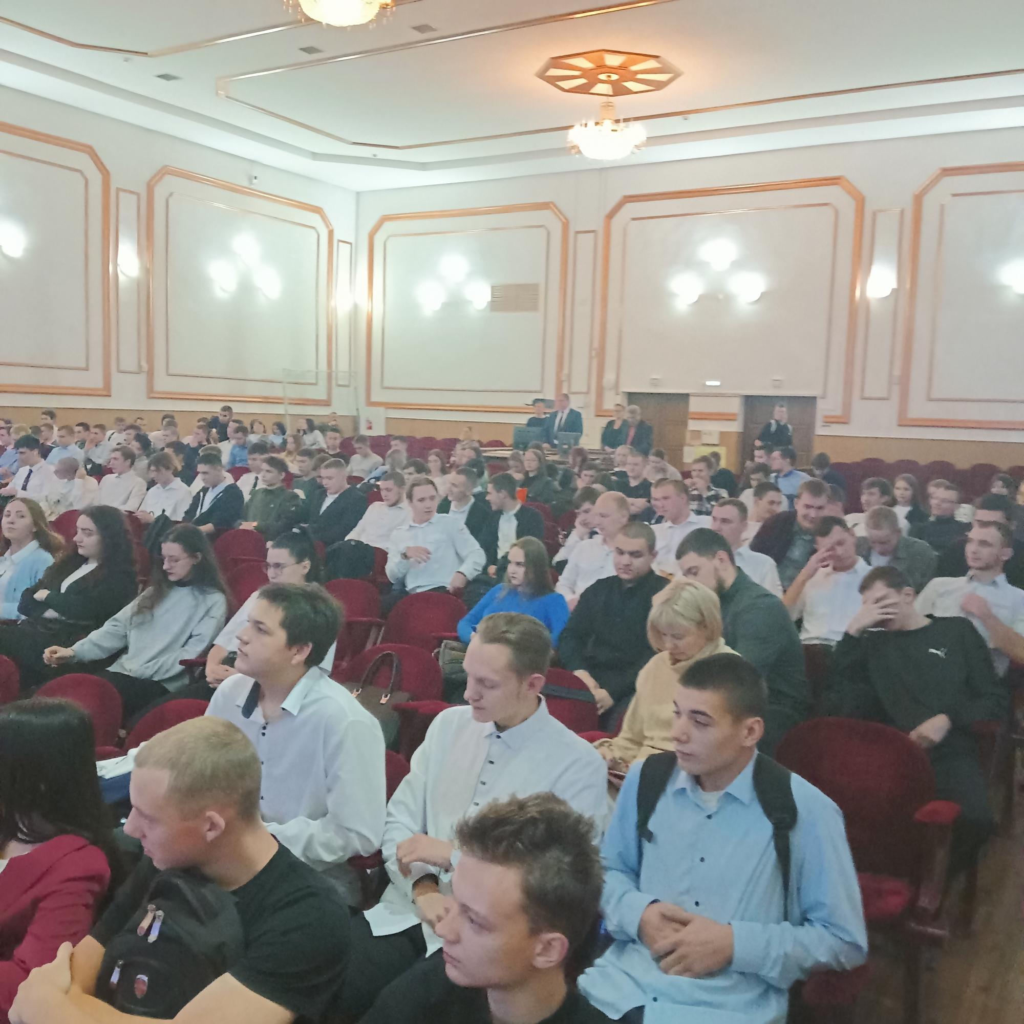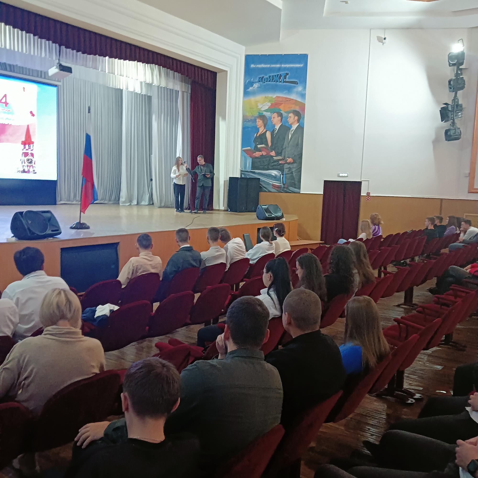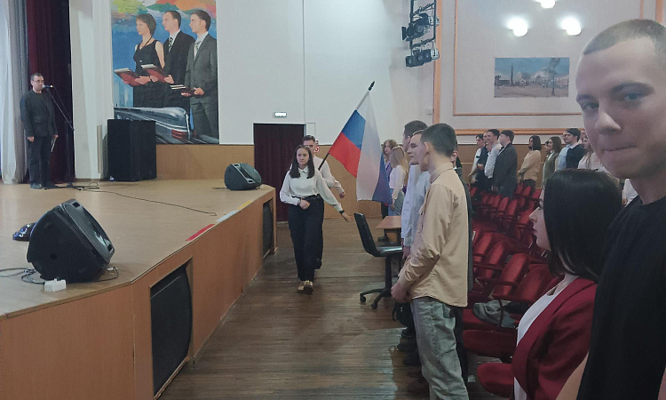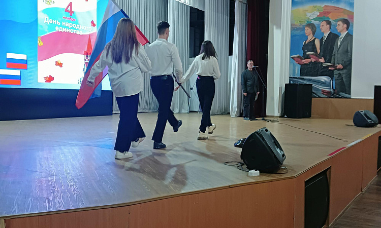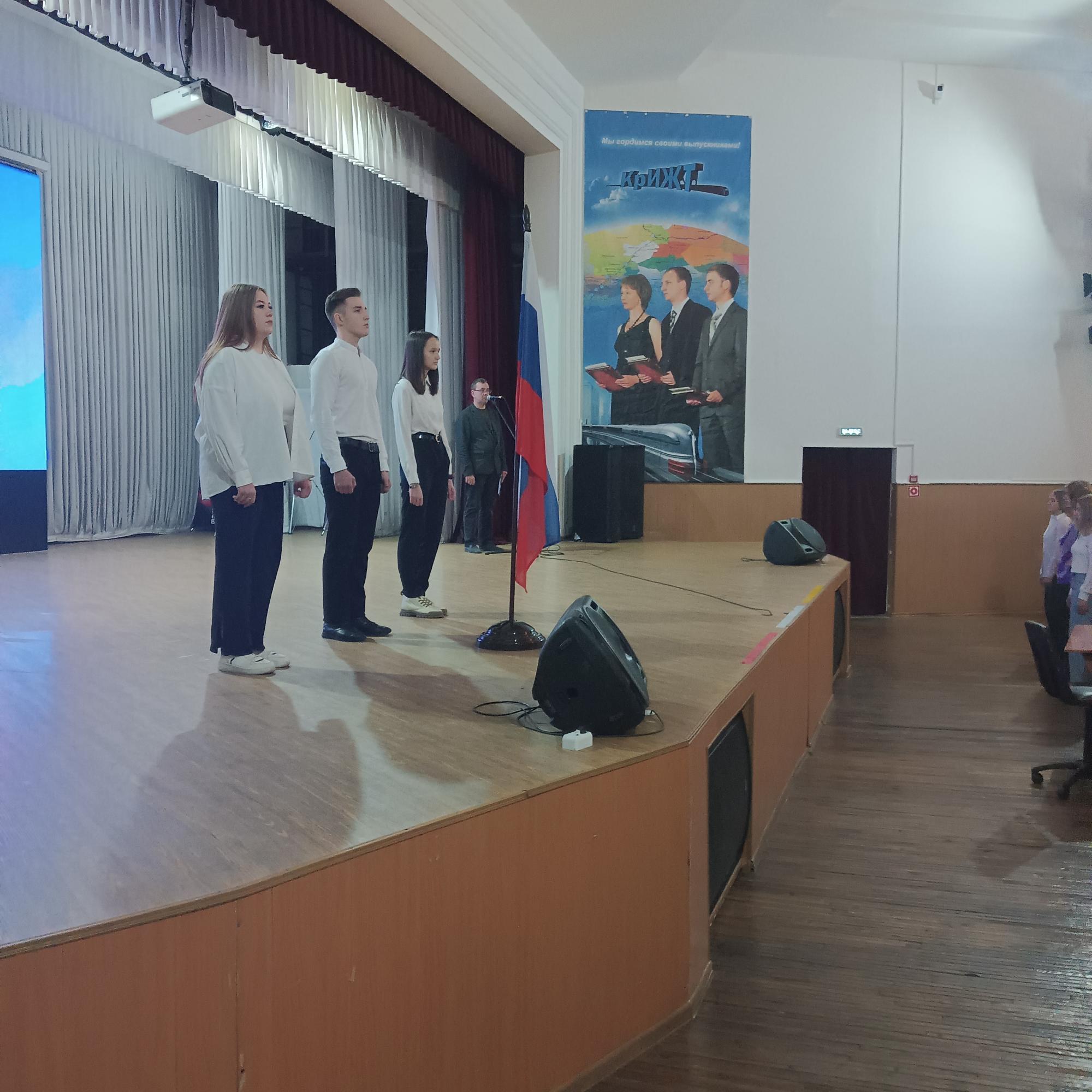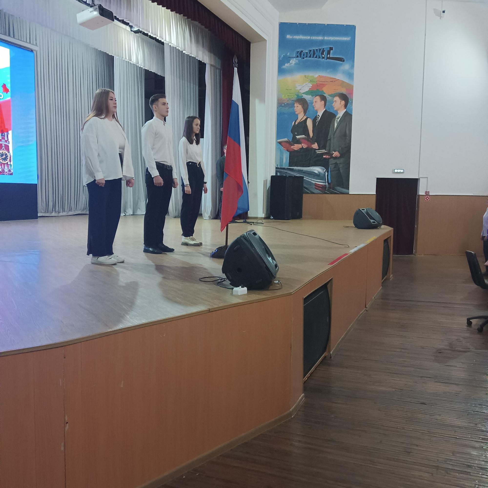 30 октября 2023 года в Красноярском техникуме железнодорожного транспорта КрИЖТ ИрГУПС вынос флага Российской Федерации и разговоры о важном состоялись в актовом зале и были посвящены предстоящему празднованию Дня народного единства.