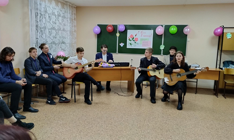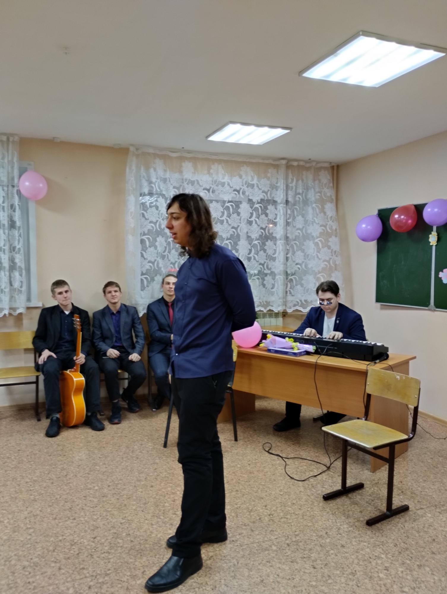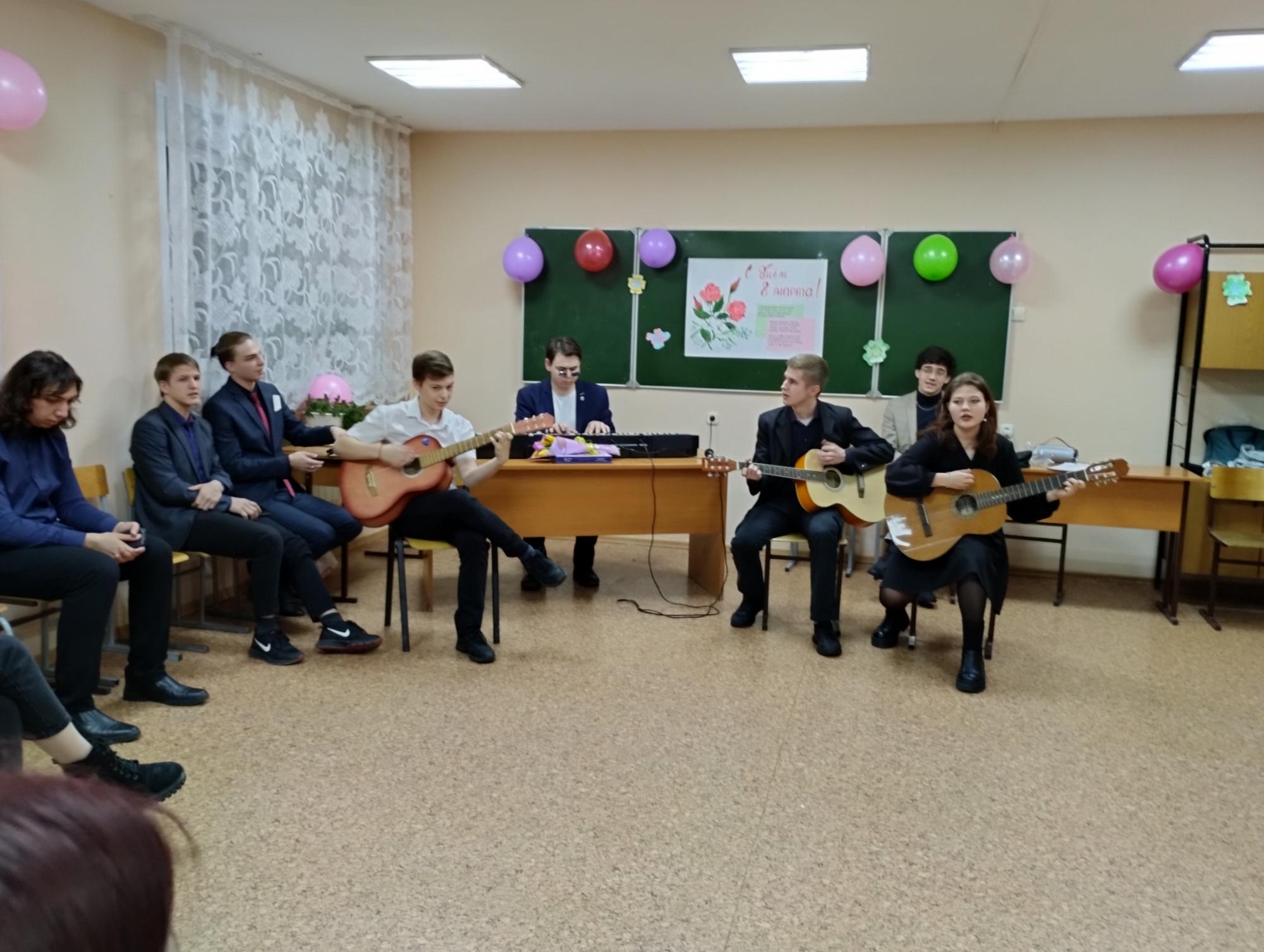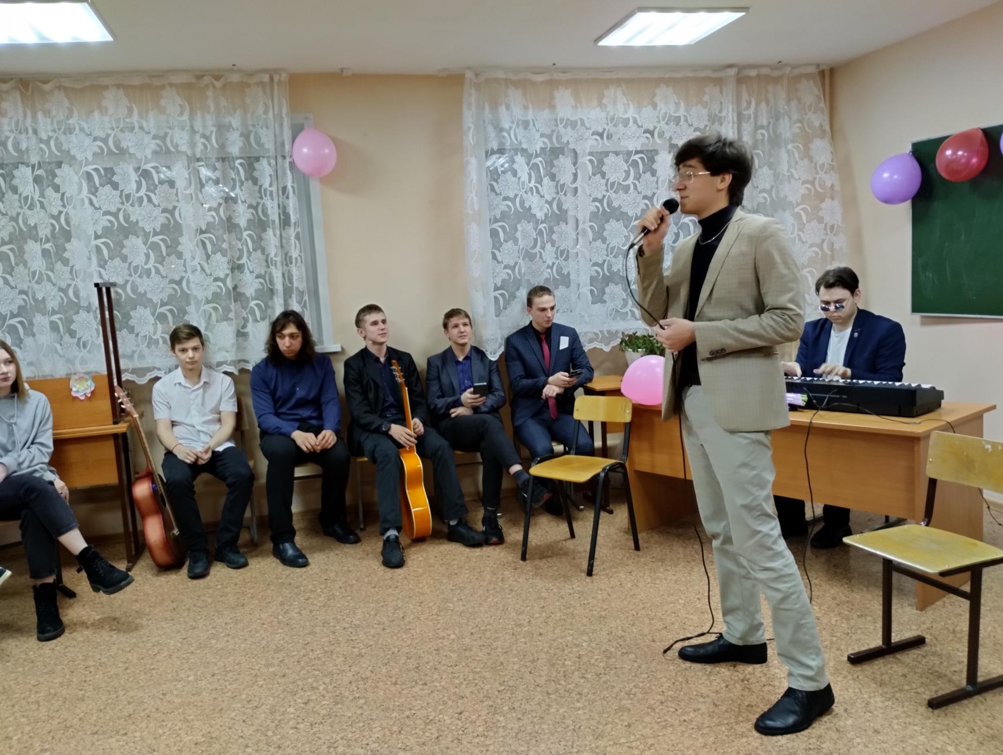 6 марта, накануне праздника, юноши общежития №1 пригласили в гости девушек общежития №2, чтобы поздравить их праздничным концертом.