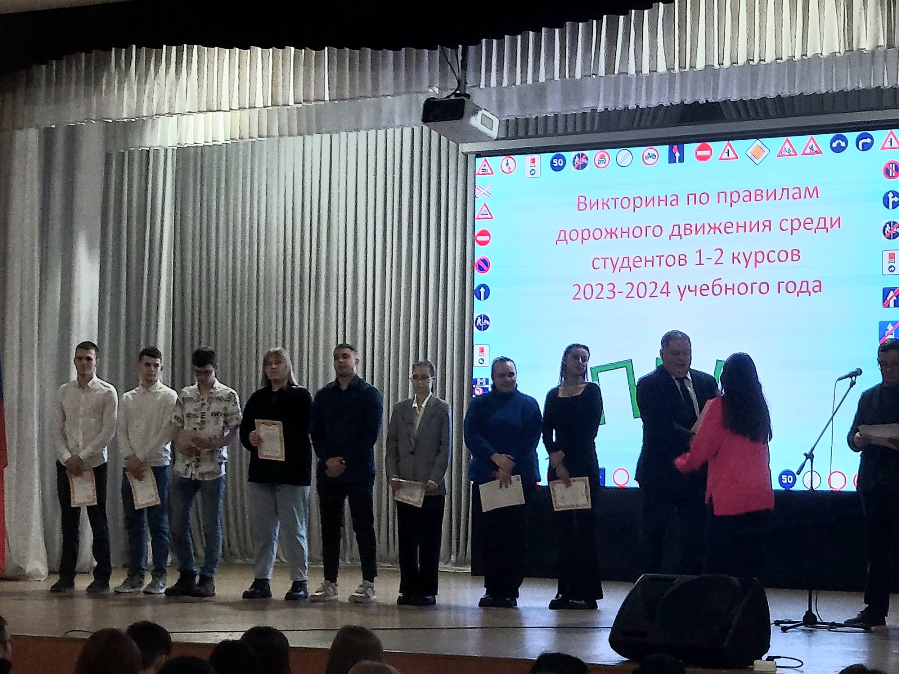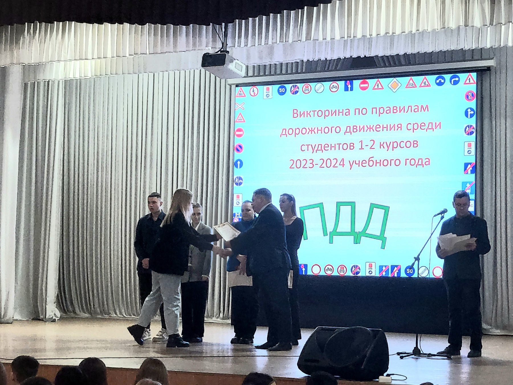 Студенты проявили знания по правилам дорожного движения, которые помогут им соблюдать дорожные законы на дороге и неукоснительно соблюдать Правила дорожного движения, а победители и призёры получили грамоты викторины. Всем большое спасибо за участие!
