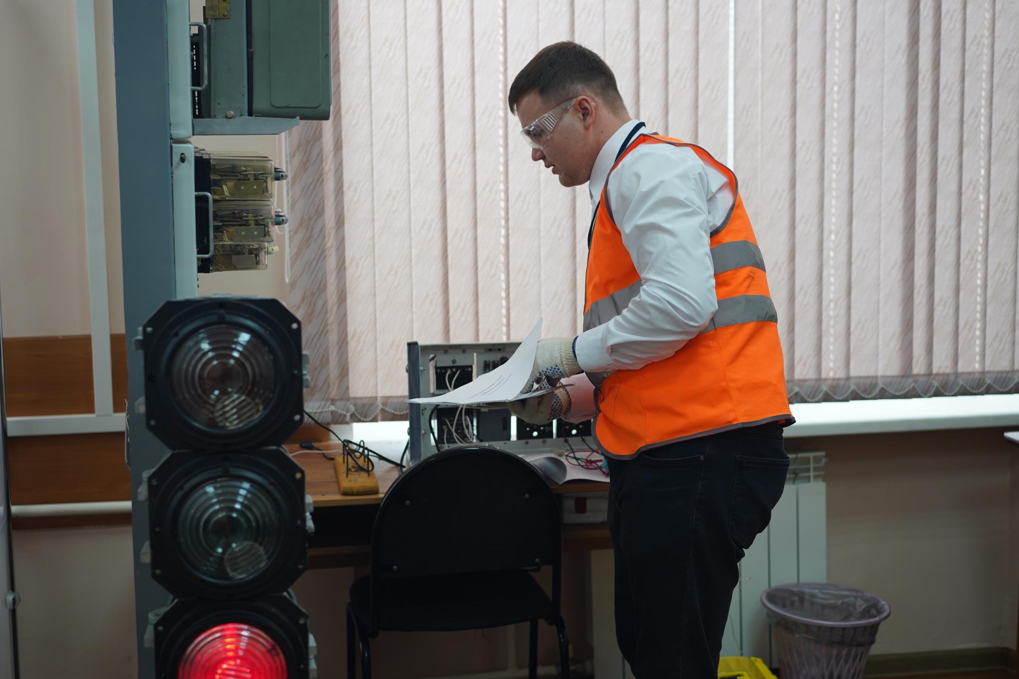 19 апреля в КрИЖТ ИрГУПС продолжились соревнования по компетенции «Обслуживание и ремонт устройств железнодорожной автоматики и телемеханики». Четыре участника второй группы выполняли задания в рамках конкурсных испытаний. За выполнением заданий наблюдали наставники и следили опытные эксперты – сотрудники Красноярской железной дороги Красноярской дирекции инфраструктуры.