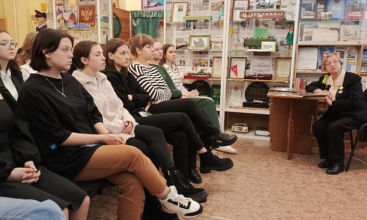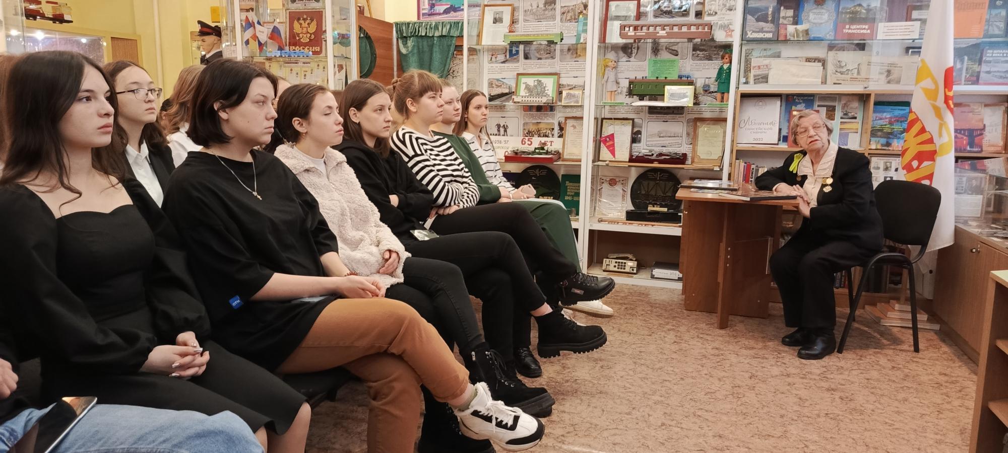 1 декабря в музее КрИЖТ ИрГУПС состоялись встреча с Антоновой Валентиной Степановной - почетным жителем г. Красноярска, председателем краевой организации «Блокадник» со студентами техникума.