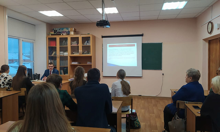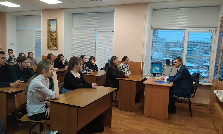 03.11.2023 года в техникуме проходила встреча в форме семинара групп специальности Организация перевозок и управление на транспорте Д11-22-3 и Д11-22-4 с заместителем начальника Красноярского АФТО – начальником отдела грузовой и коммерческой работы Устиновым Виталием Николаевичем.