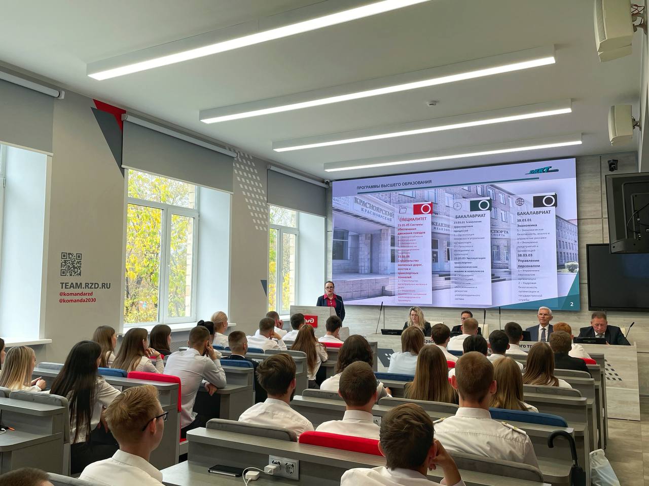 В ходе встречи выпускникам рассказали о возможности поступления на образовательные программы ВО на базе среднего-профессионального образования, о формах и сроках, о преимуществах ускоренного обучения. Колмаков О.В. рассказал о перспективах участия в реализации грантовых проектов, в Акселерационной программе технологического предпринимательства, о гарантии трудоустройства выпускников на предприятия ОАО «РЖД» и на предприятия реального сектора экономики.
