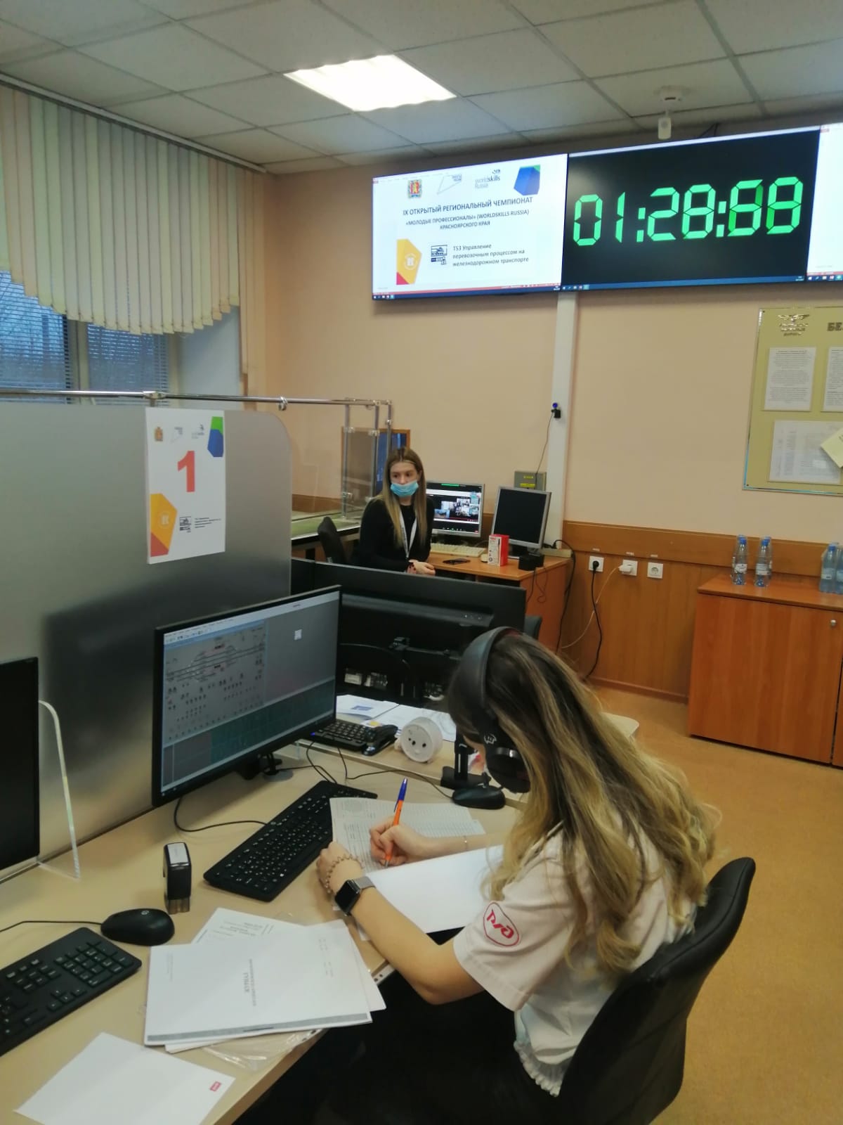 08.12.21 второй день соревнований IХ Открытого Регионального чемпионата профессионального мастерства «Молодые профессионалы» (WorldSkills Russia) Красноярского края. Сегодня на соревновательной площадке Регионального чемпионата по компетенции Т53 «Управление перевозочным процессом на железнодорожном транспорте» (возрастная категория 16-22 года) проходит выполнение конкурсного задания модуль С: «Выполнение работы дежурного по железнодорожной станции при нарушении нормальной работы устройств железнодорожного транспорта».