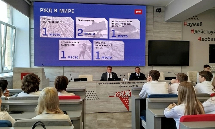31 марта 2026 года Красноярский институт железнодорожного транспорта (КрИЖТ ИрГУПС) принимал важных гостей. Заместитель главного инженера Центральной дирекции управления движением Мандрик Дмитрий Александрович совместно с главным инженером Красноярской дирекции управления движением Амелиным Д.В. посетили учебное заведение с насыщенной программой.