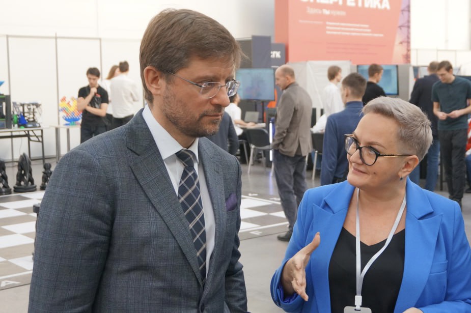 Выставочную площадку посетили заместитель председателя Правительства Красноярского края Алексей Михайлович Медведев и заместитель министра образования и науки Красноярского края Ольга Николаевна Никитина.
