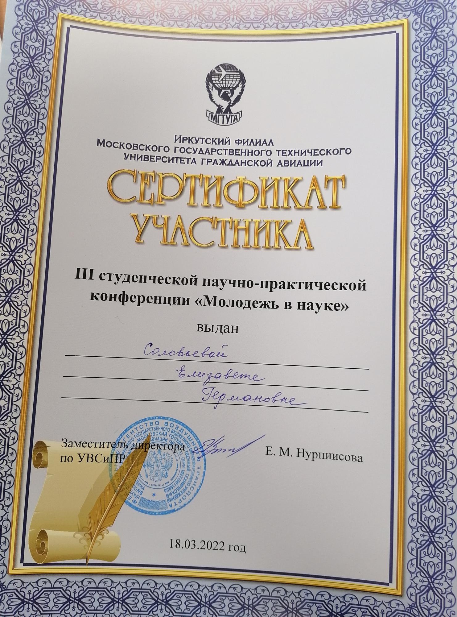 18 марта 2022 года студенты первого курса специальности Сестринское дело медицинского колледжа железнодорожного транспорта ФГБОУ ВО ИрГУПС приняли участие в работе III студенческой научно-практической конференции «Молодежь в науке» на базе Иркутского филиала Московского государственного технического университета гражданской авиации.