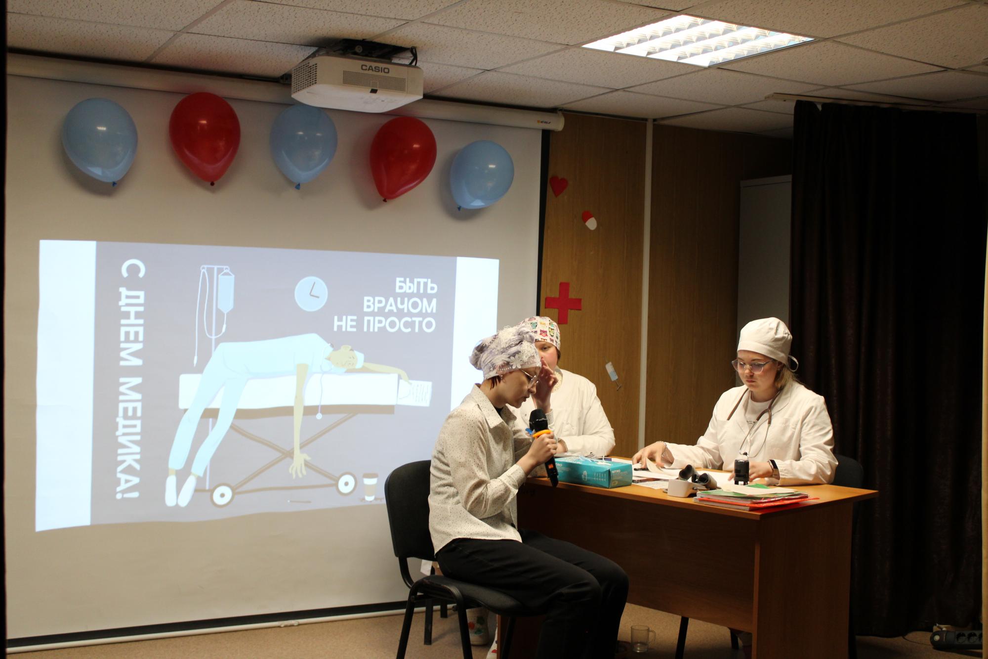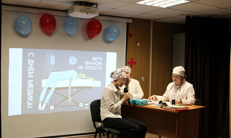 Группа подготовила песни, танцы, сценку, стихотворения, фотозону, также велся прием врача в холле.