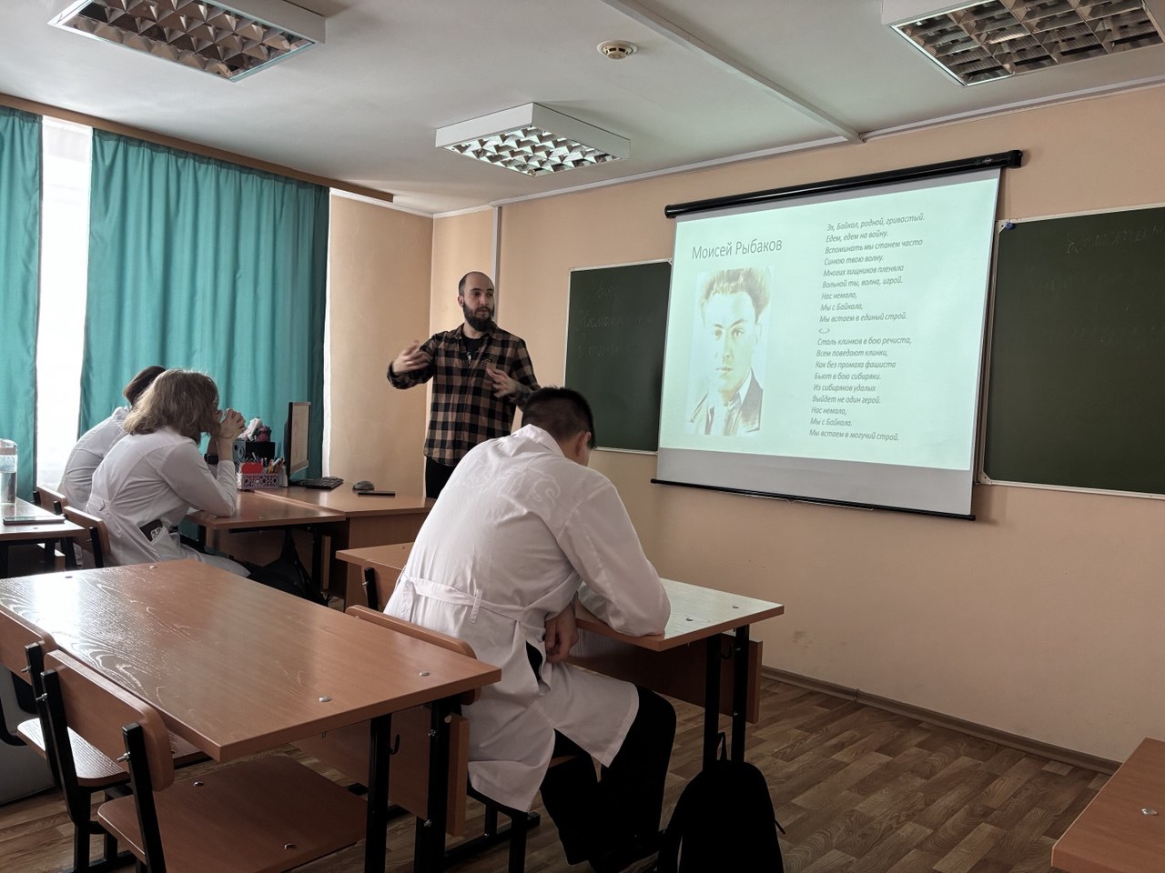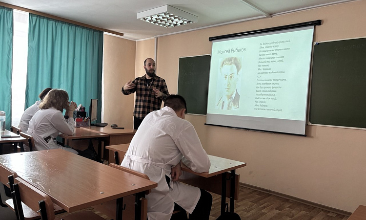 10 марта в группах СД.9-24-1 и СД.9-24-2 преподавателем Ивановой Т.Н. и библиотекарем Рудько О.В. были организованы литературно-исторические лекции «Иркутские писатели в окопах Второй мировой». Такие занятия имеют важное значение для студентов, ведь Великая Отечественная война коснулась каждой семьи в Советском Союзе. Весь народ поднялся на борьбу с захватчиками. Не остались в стороне и литераторы. Моисей Рыбаков, Иосиф Уткин, Джек Алтаузен, Иван Молчанов-Сибирский, Юрий Левитанский – обо всех этих замечательных людях рассказал И. Подковенко, специалист Областной библиотеки им. И.П.Уткина.