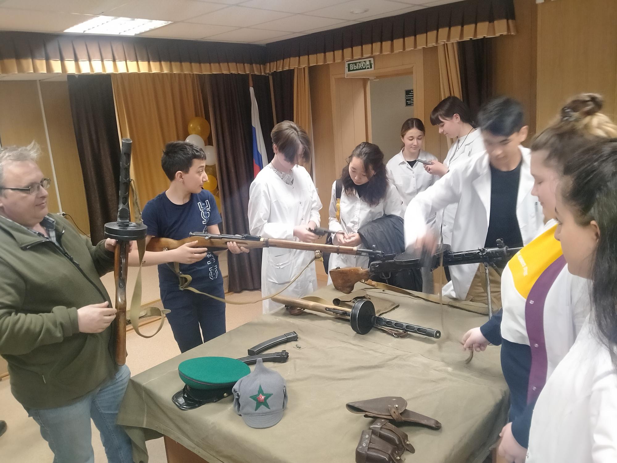 Участники мероприятия не только узнали много интересной информации о пограничных войсках, также смогли посмотреть и опробовать огнестрельное оружие, которое использовалось в первой половине 20 века.