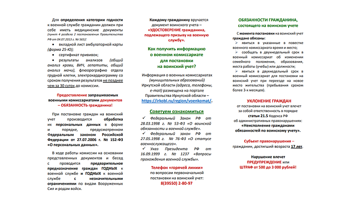 Информация о военных комиссариатах (муниципальных образований) Иркутской области (адреса, телефоны, e-mail) размещена на портале