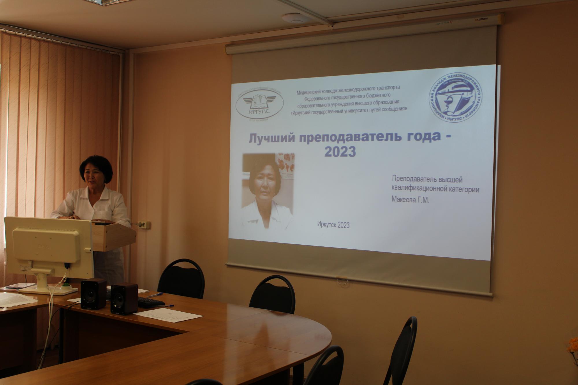 4 октября в Медицинском колледже железнодорожного транспорта ИрГУПС был определен победитель конкурса «Лучший преподаватель года - 2023». Им стала преподаватель Макеева Гулнара Мамилейевна.