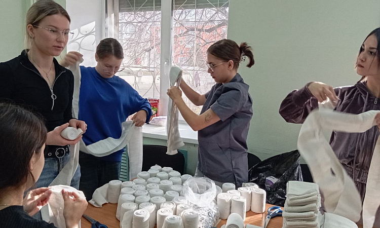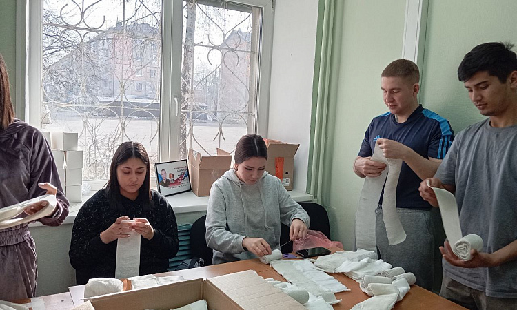 Студенты изготовили более 200 индивидуальных перевязочных пакетов.