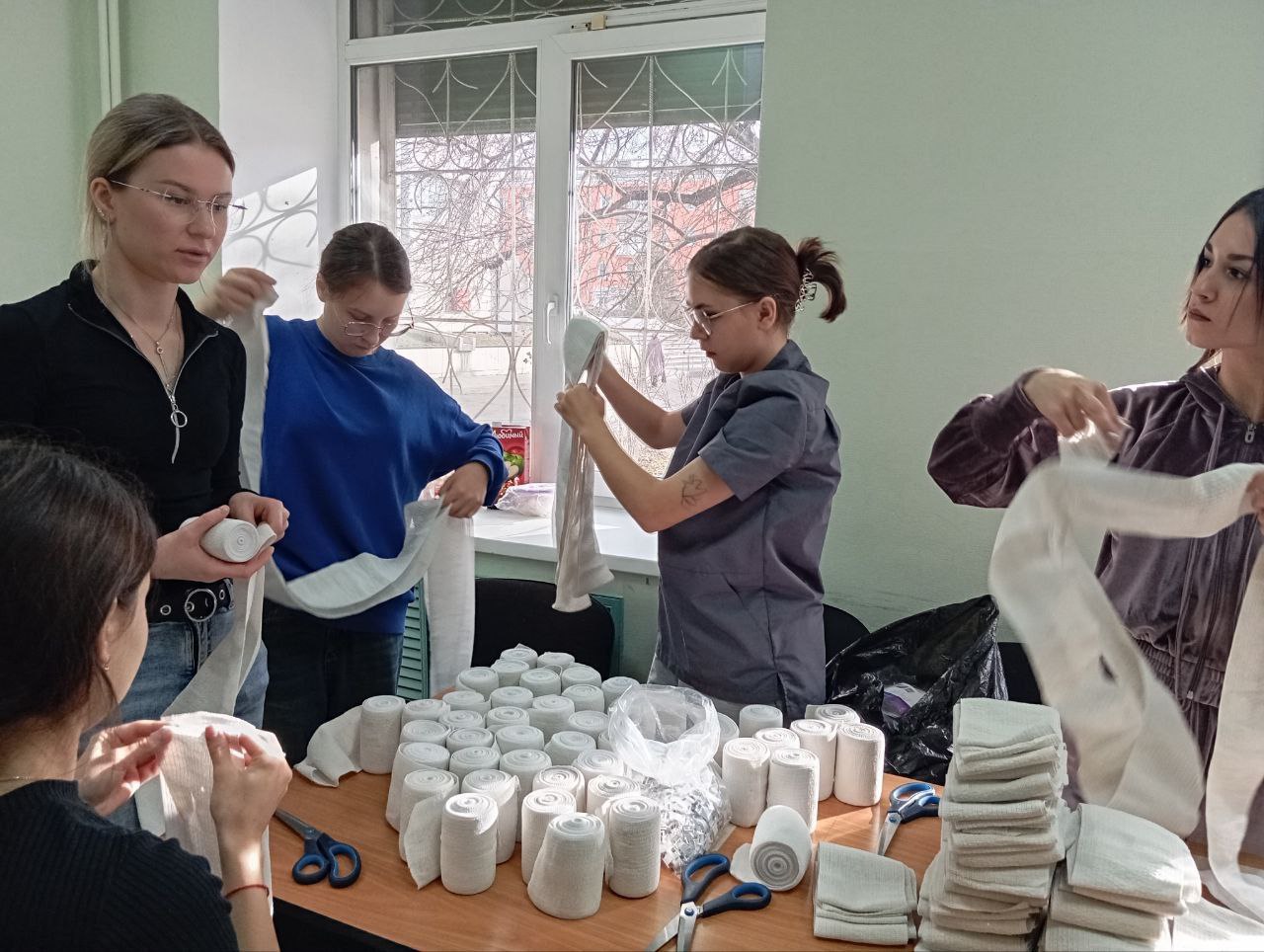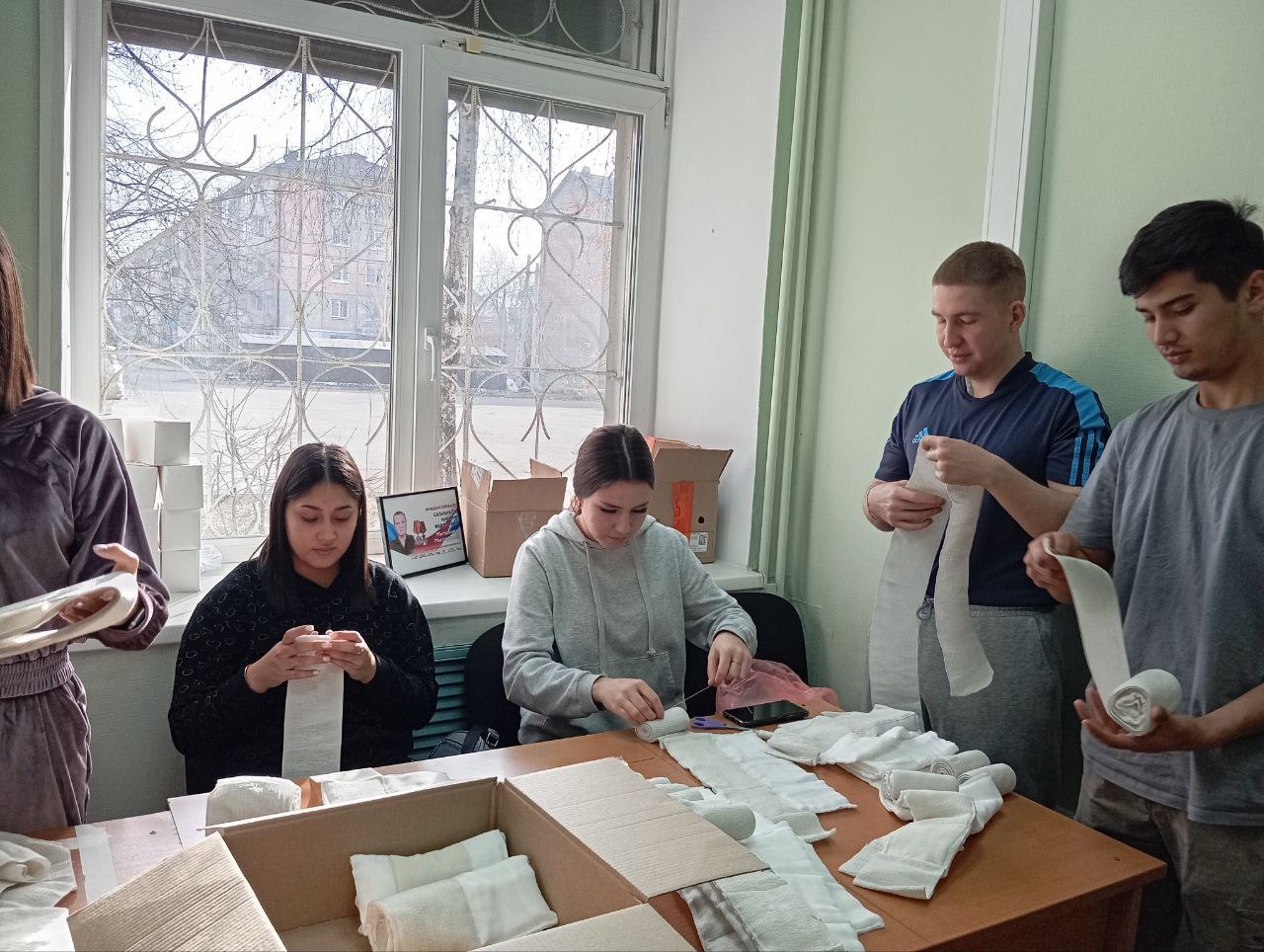 Студенты изготовили более 200 индивидуальных перевязочных пакетов.