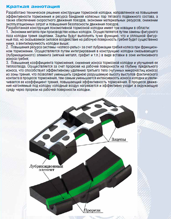Повышение ресурса системы "КОЛЕСО-РЕЛЬС" и эффективности торможения, за счет новой локомотивной тормозной колодки