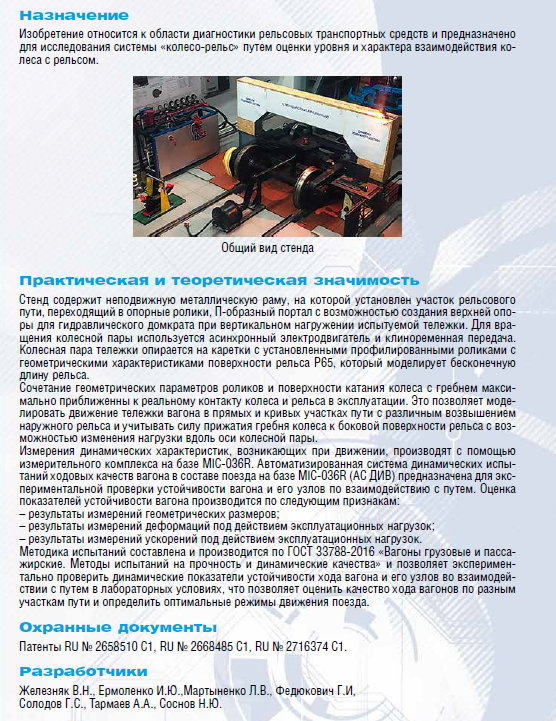 Стенд для оценки уровня и характера силового взаимодействия колеса с рельсом
