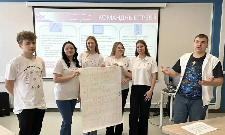 Дарья и Виктория поделились работой амбассадоров в СКТиС, рассказали какие мероприятия они проводят в рамках профориентации. А также приняли участие в командной работе.