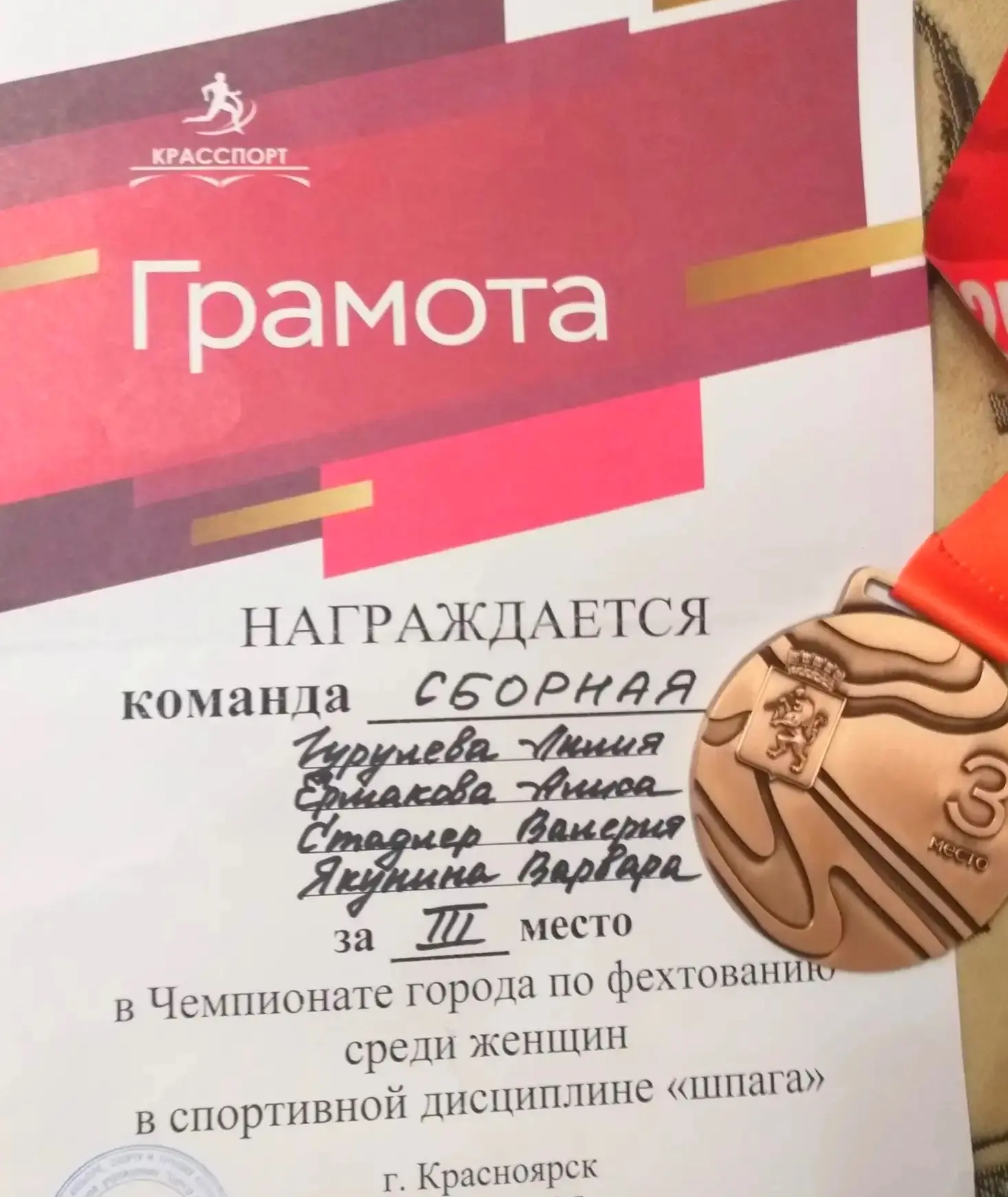 🤺 Валерия стала обладателем III места в командном зачёте спортивной дисциплины "шпага".
