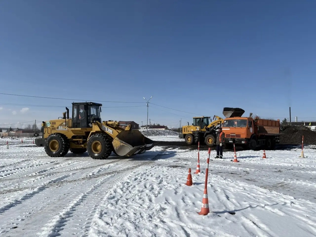 После погрузки в самосвал — этап складирования. Матвей аккуратно уложил оставшийся грунт в штабель, соблюдая геометрию.