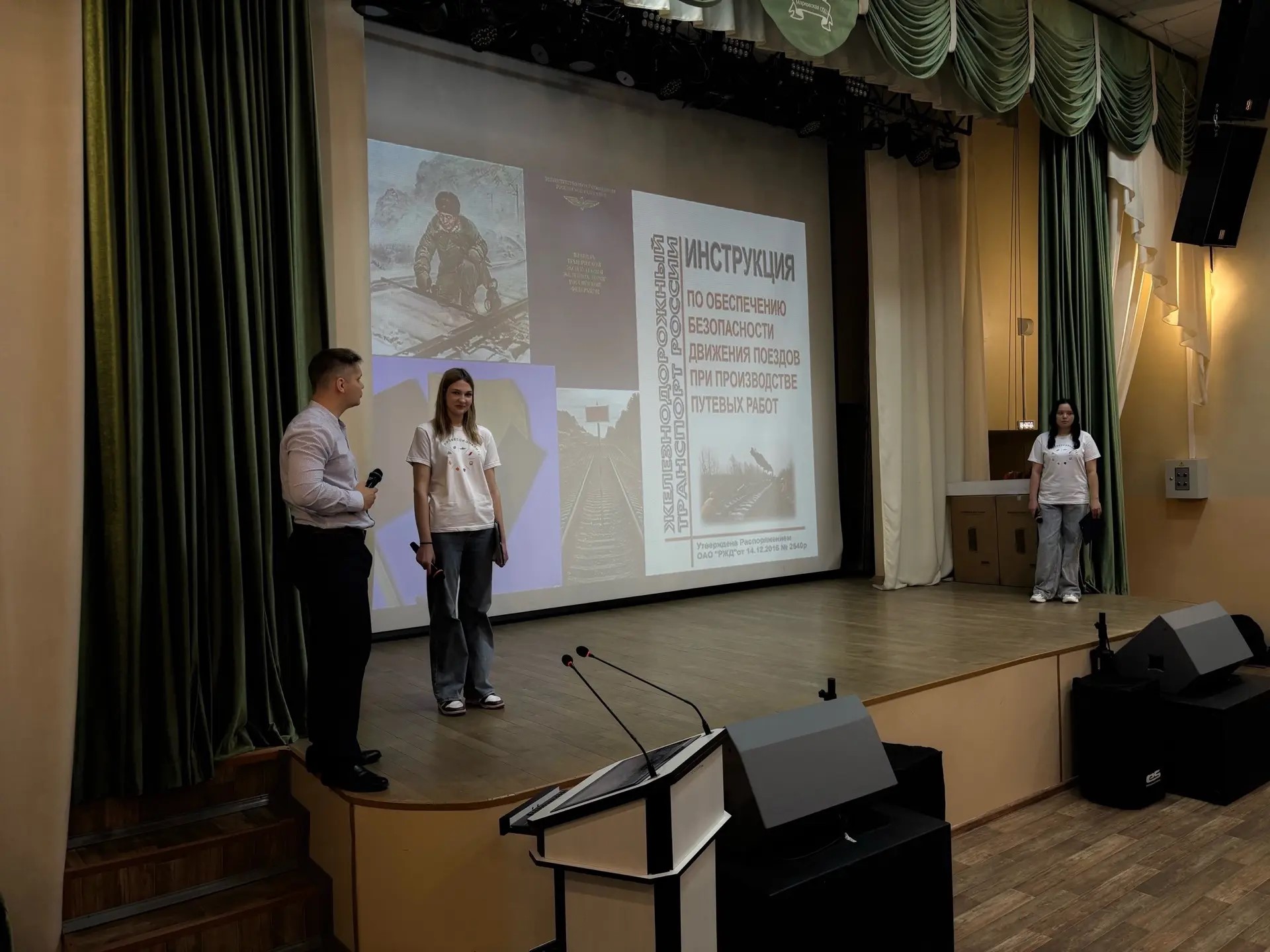 Амбассадоры Профессионалитета колледжа Дарья Никонова и Виктория Карпенко совместно с Егором Садыриным, преподавателем специальности «Строительство железных дорог, путь и путевое хозяйство», вошедшей в ФП Профессионалитет, провели Всероссийский классный час, организованный в рамках Единого дня открытых дверей.