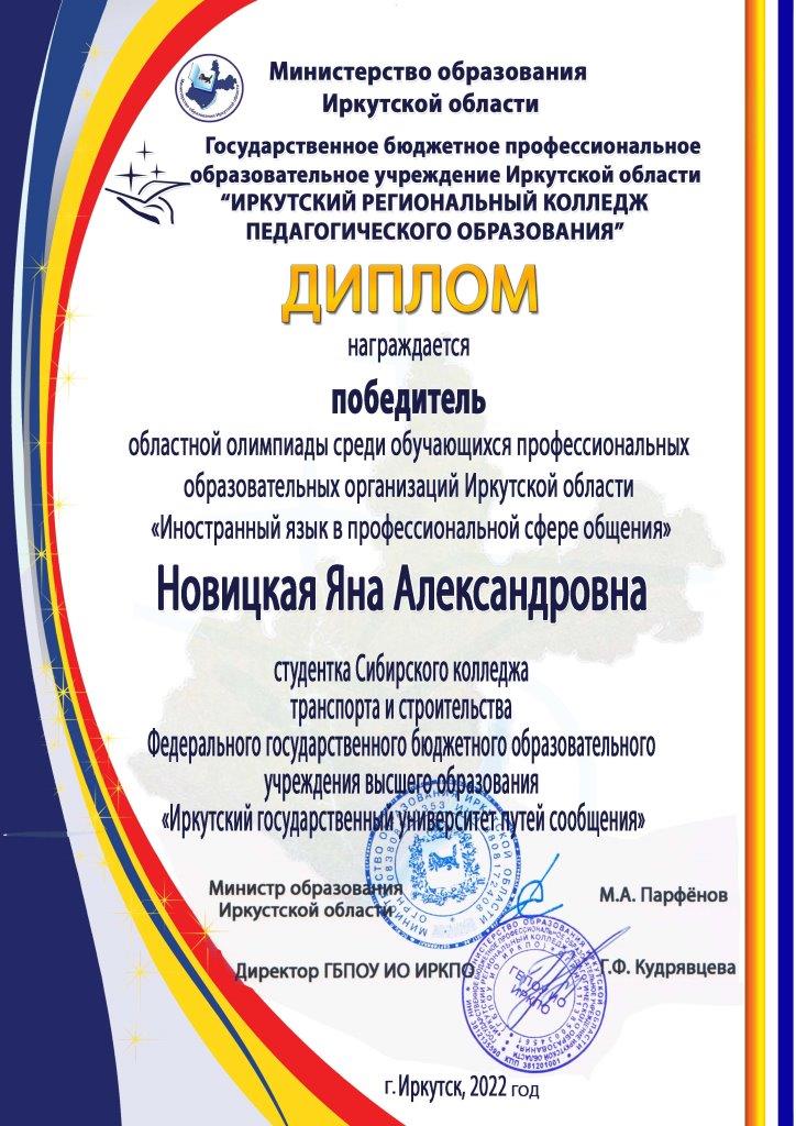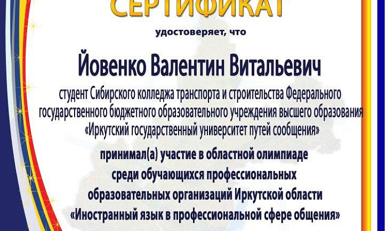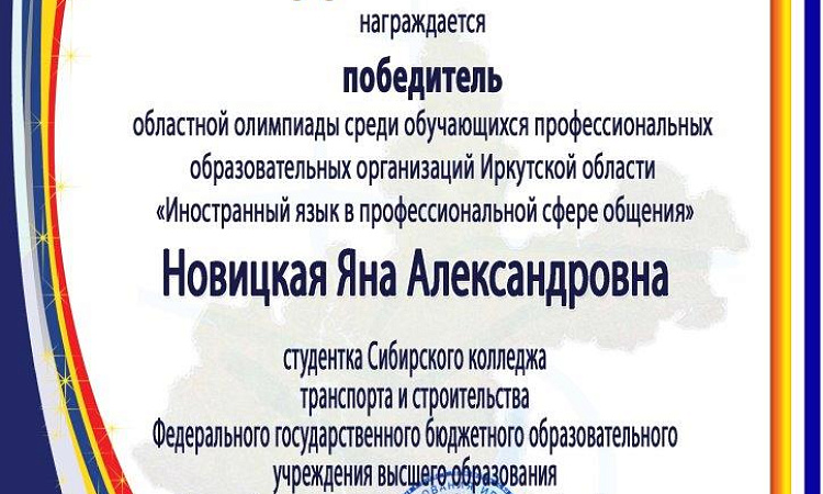 С некоторым запазданием были обнародованы итоги Областной олимпиады среди обучающихся учреждений СПО Иркутской области « Иностранный язык в профессиональной сфере общения».