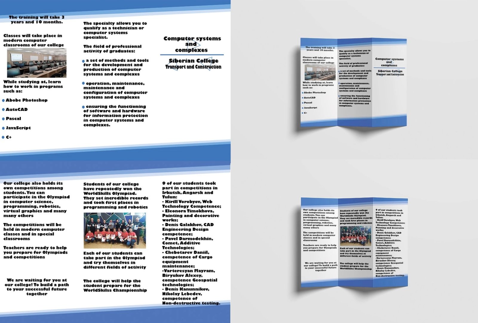 1. Реклама своей будущей профессии на иностранном языке (нужно было креативно написать и оформить при помощи фото и рисунков рекламный текст о получаемой профессии/специальности).
