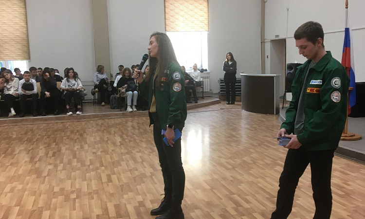 Вторая часть занятия была посвящена, по традиции, знакомству с возможностями, которые предоставлены нашим студентам, имеющим активную гражданскую позицию. В это раз гостем стала командир штаба Байкальского студенческого строительного отряда Куликова Екатерина. Она познакомила ребят с деятельностью стройотряда, о тех объектах, на которых работают студенты, об интересной и насыщенной жизни «стройотрядовцев».
