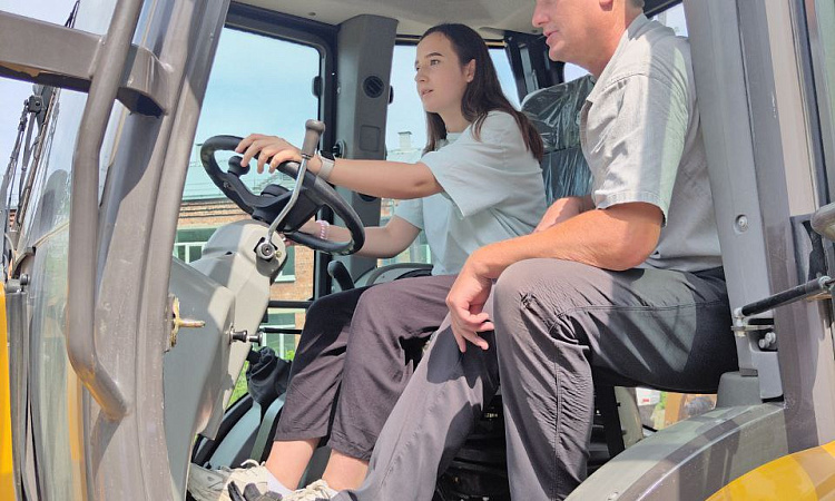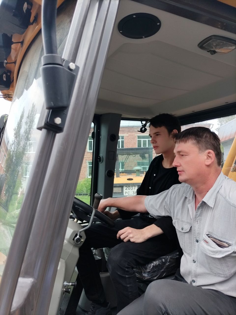 🔹 Работа на погрузчике-экскаваторе под руководством опытного инструктора добавила им уверенности и интереса к будущей профессии.