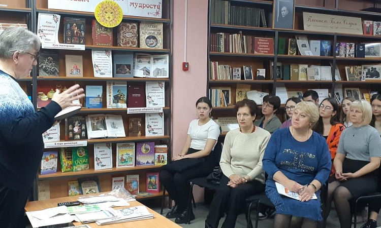 В двадцать восьмой раз пришел в Иркутск фестиваль « Дни русской духовности и культуры Сияние России». По традиции студентов колледжа в эти дни клуб «Встреча для Вас..» приглашает на встречи с поэтами, писателями. Студенты первого и четвертого курсов пришли в уютный и гостеприимный читальный зал городской библиотеки № 16. Гостями встречи были: Аркадий Григорьевич Елфимов – общественный деятель, фотохудожник, издатель, коллекционер, меценат. Григорий Иванович Вихров – поэт, член союза писателей России. Юрий Станиславович Харлашкин - иркутский прозаик. Гости рассказали о себе, поделились впечатлениями, ответили на вопросы студентов, читали стихи. Встреча запомнится студентам, где и когда ещё удастся встретиться с живыми писателями и поэтами, задать вопрос и получить ответ из первых уст.