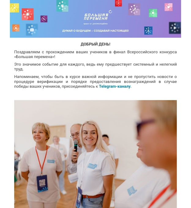 Итоги полуфиналов Всероссийского конкурса "Большая перемена"