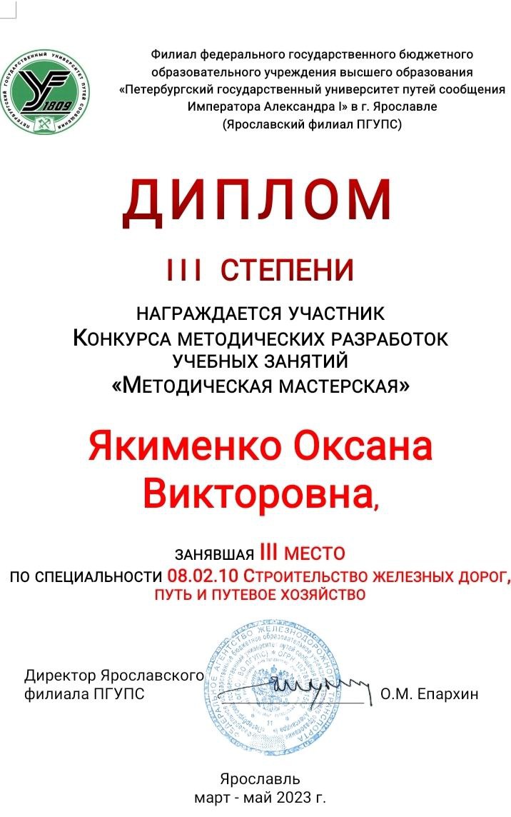 С апреля по май 2023 года проходил конкурс методических разработок учебных занятий «Методическая мастерская» при поддержке ФГБУ ДПО «Учебно-методический центр по образованию на железнодорожном транспорте» ✨