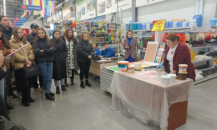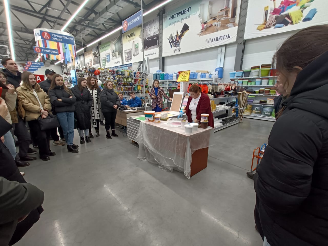 27 октября 2022 г студенты 3 курса специальности СЭЗС в составе 30 человек в сопровождении преподавателей профессиональных дисциплин, посетили мастер-класс по отделке помещений декоративными материалами на базе лакокрасочного завода Капитель. Тематика мероприятия была ориентирована на практический опыт и теоретические знания наших студентов. У многих ребят возник интерес к работе с представленными продуктами завода.