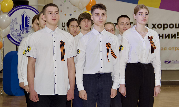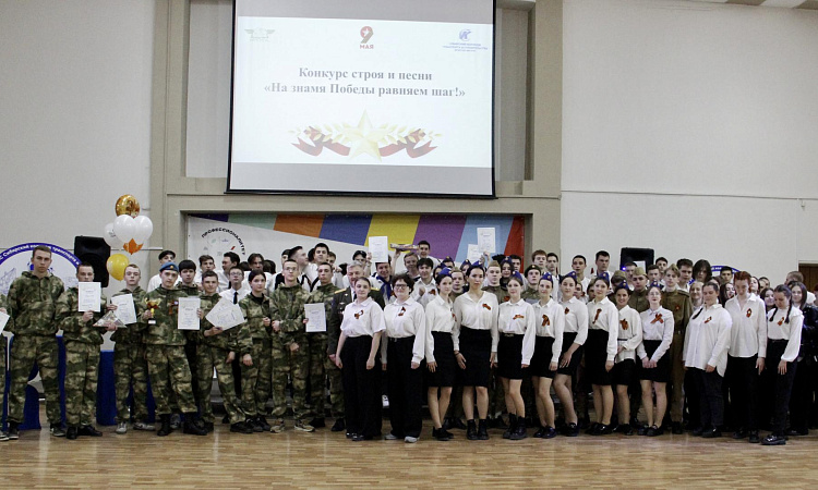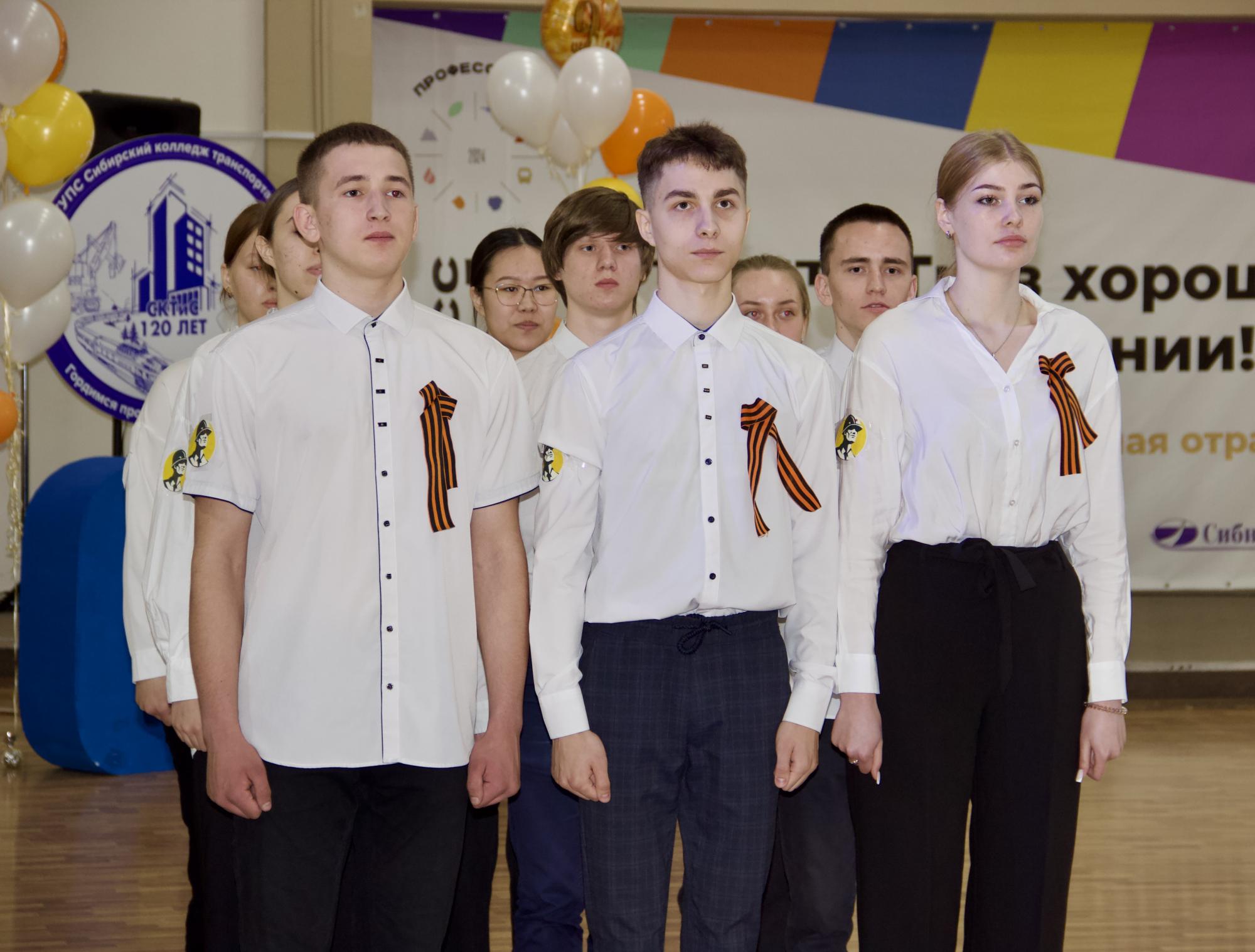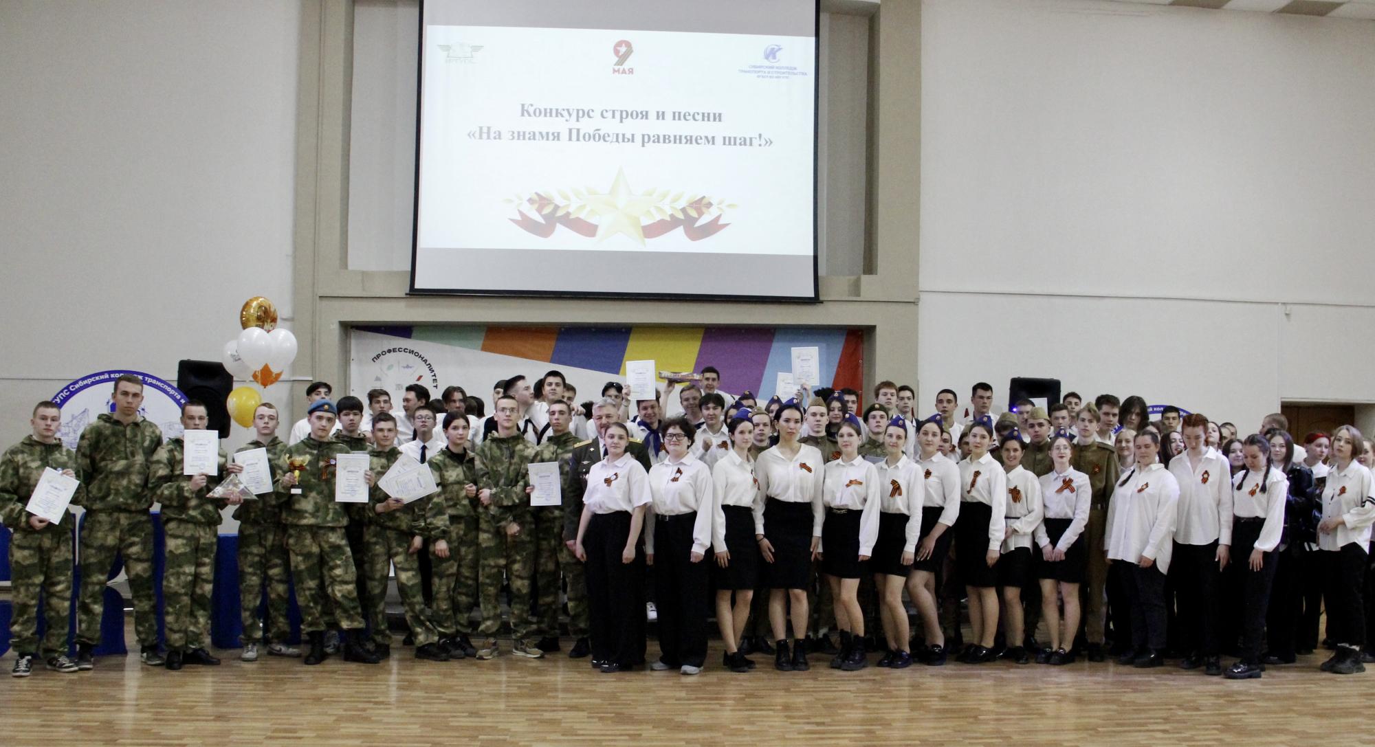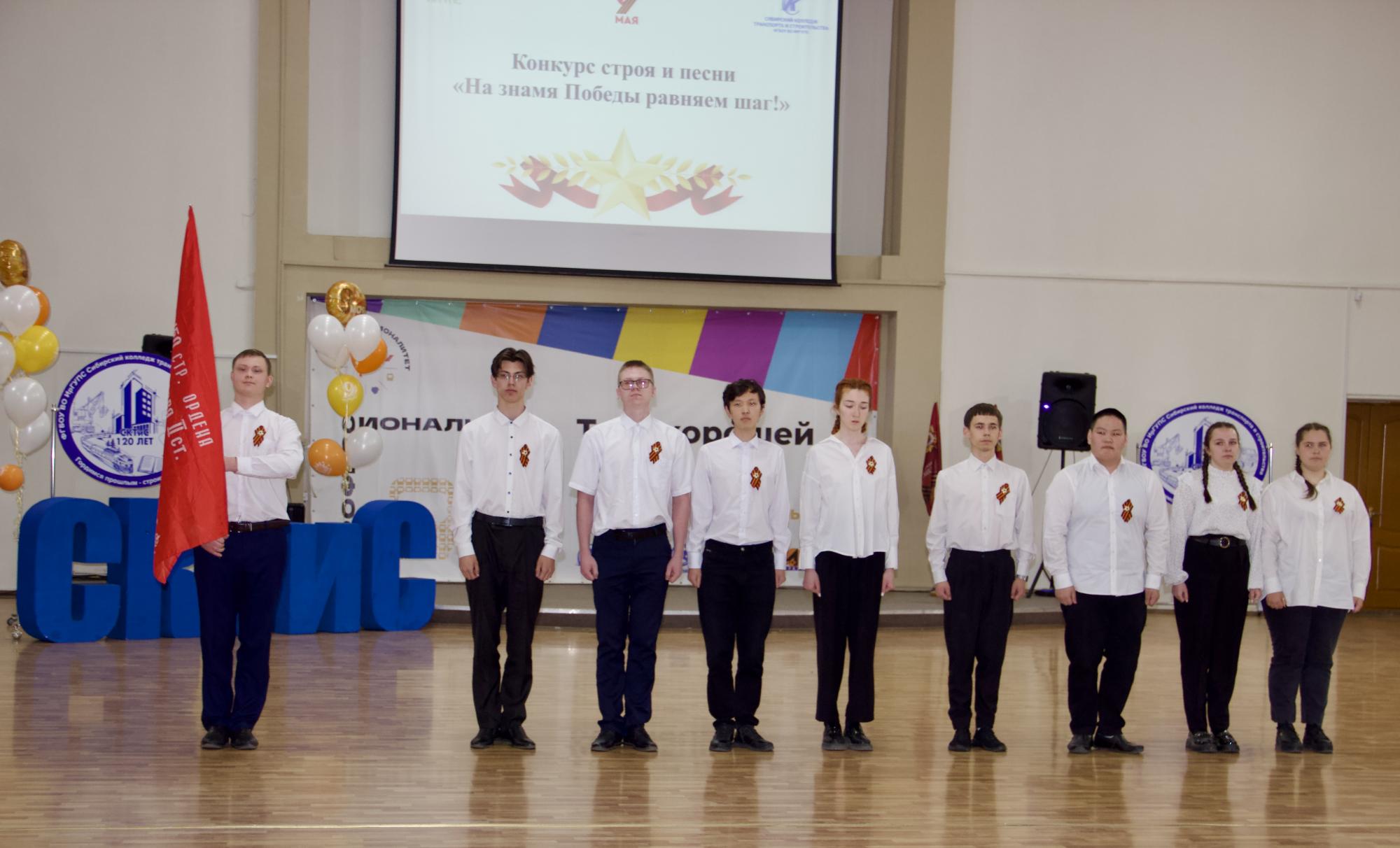В Сибирском колледже транспорта и строительства ИрГУПС в честь празднования Дня Победы в Великой Отечественной войне состоялся конкурс строя и песни «На знамя Победы равняем шаг!»