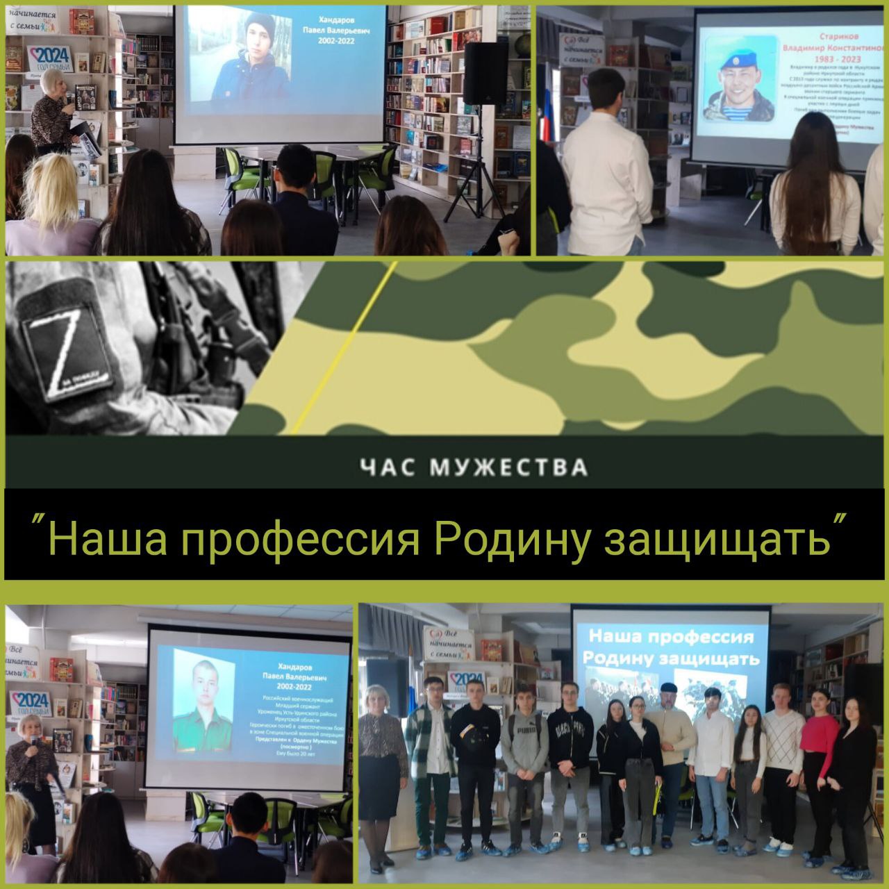 ▪️Час мужества в поддержку военнослужащих России, участвующих в специальной военной операции прошёл для студентов гр. С. 9-22-1 в библиотеке им. Д. Г. Сергеева.