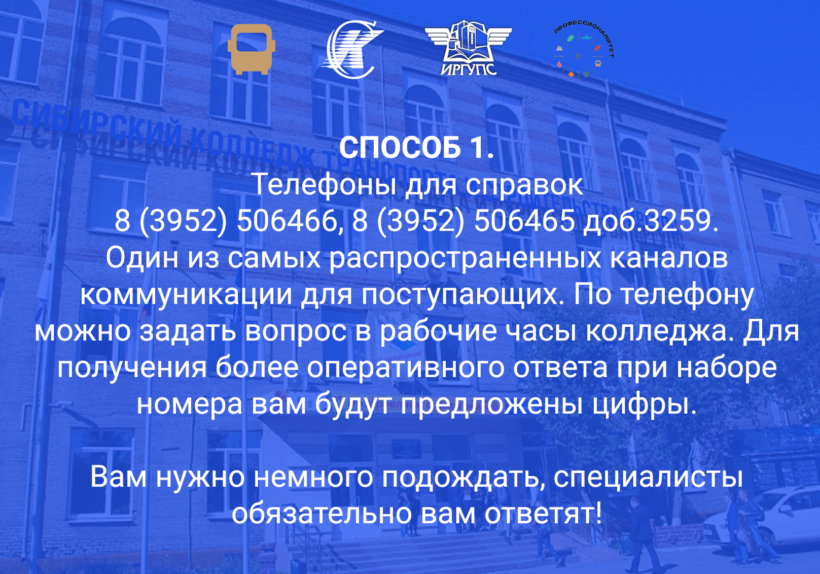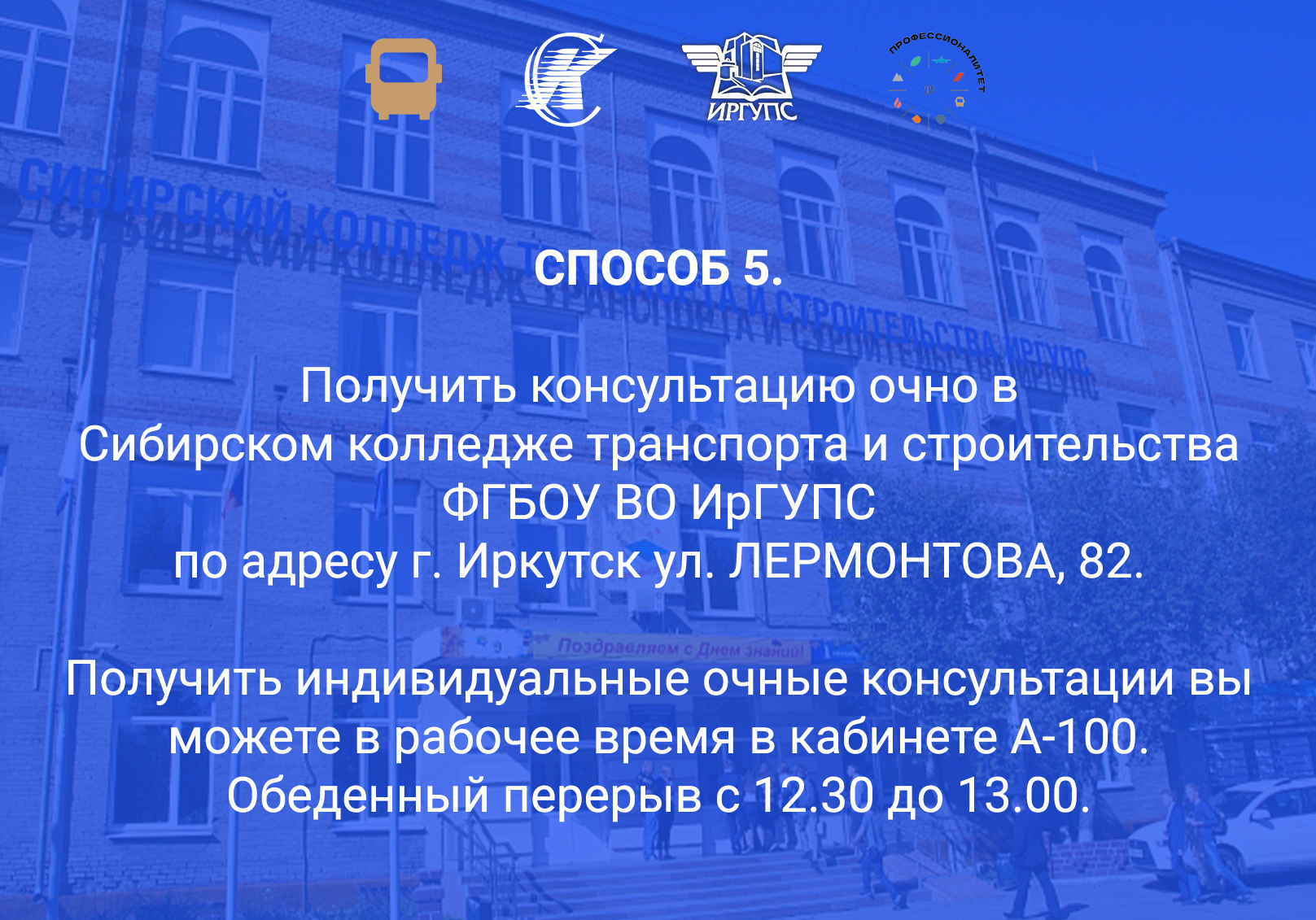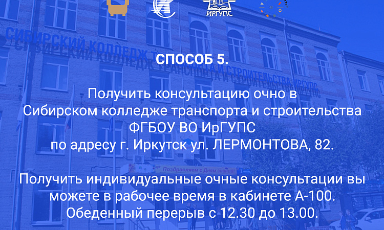 Как получить консультацию по поступлению в Сибирский колледж транспорта и строительства ИрГУПС?