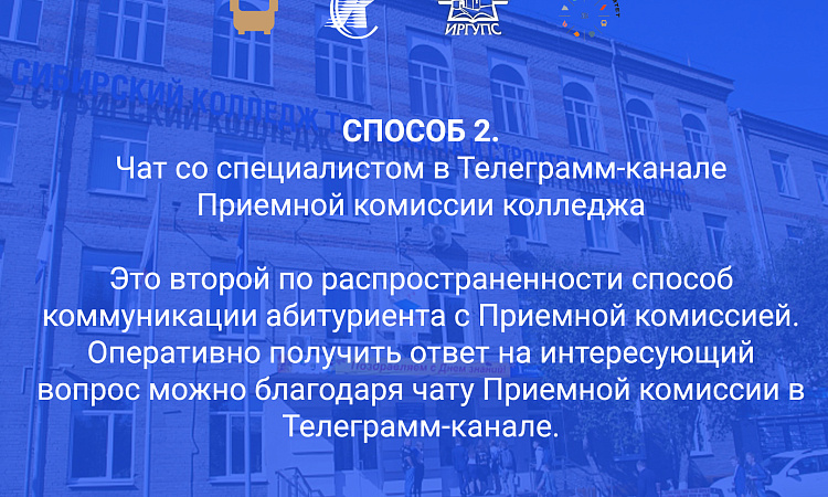 Телеграм-канал Приемной комиссии СКТиС – https://t.me/pk_sktis_irgups