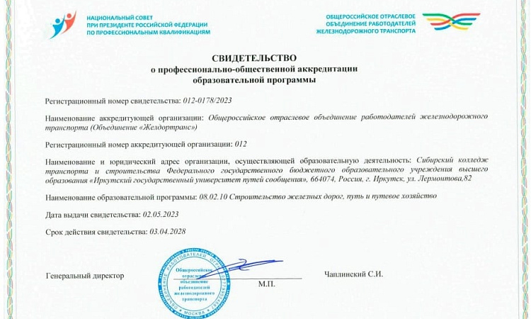 Сибирский колледж транспорта и строительства ИрГУПС успешно прошел процедуру профессионально-общественной аккредитации по специальности 38.02.01 Экономика и бухгалтерский учёт (по отрослям).