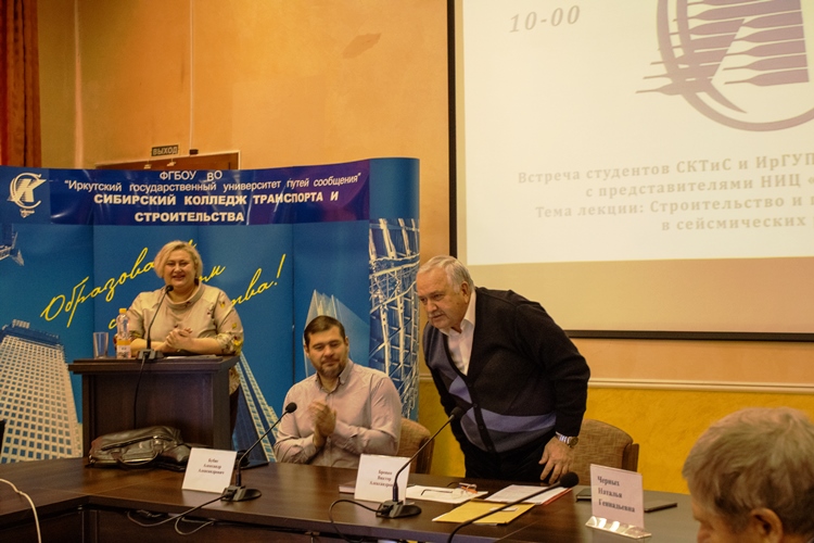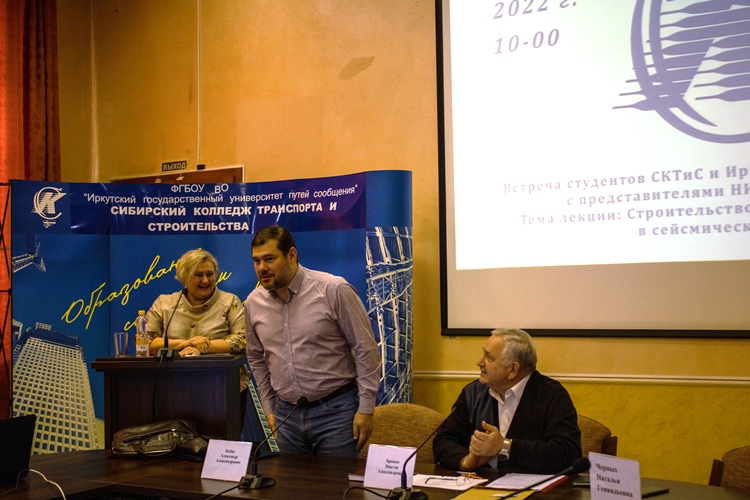 1 декабря 2022 года на базе Сибирского колледжа транспорта и строительства ФГБОУ ВО ИрГУПС для преподавателей и студентов специальности СЭЗС состоялся семинар на тему: «Особенности проектирования и строительства задний в сейсмических районах» с участием Заместителя руководителя Центра исследований сейсмостойкости сооружений Центрального научно-исследовательского института строительных конструкций имени В.А. Кучеренко (ЦИСС ЦНИИСК им. В.А. Кучеренко) АО «НИЦ «Строительство» Бубиса Александра Александровича. Семинар был организован Сибирским отделением ЦНИИСК им. В.А. Кучеренко в котором приняли участие Министерство строительства ИО, представители более 10 ведущих проектных организаций ИО, представители ВУЗ, СПО и ЦОПП ИО.