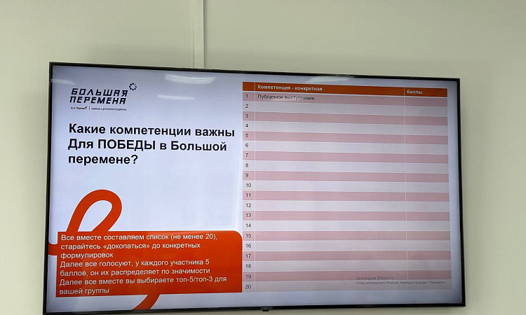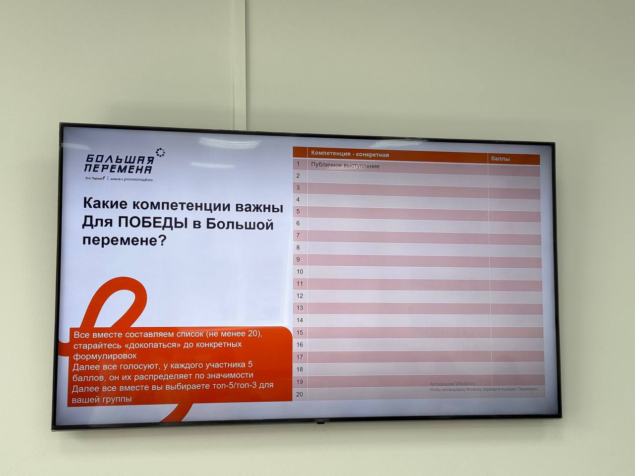🔸В игровом формате разобрали компетенции, которые необходимы для ПОБЕДЫ в «Большой перемене». Единогласно было принято, что КРЕАТИВНОСТЬ и ДИСЦИПЛИНА-это главные составляющие, необходимые для Победы в конкурсе💯